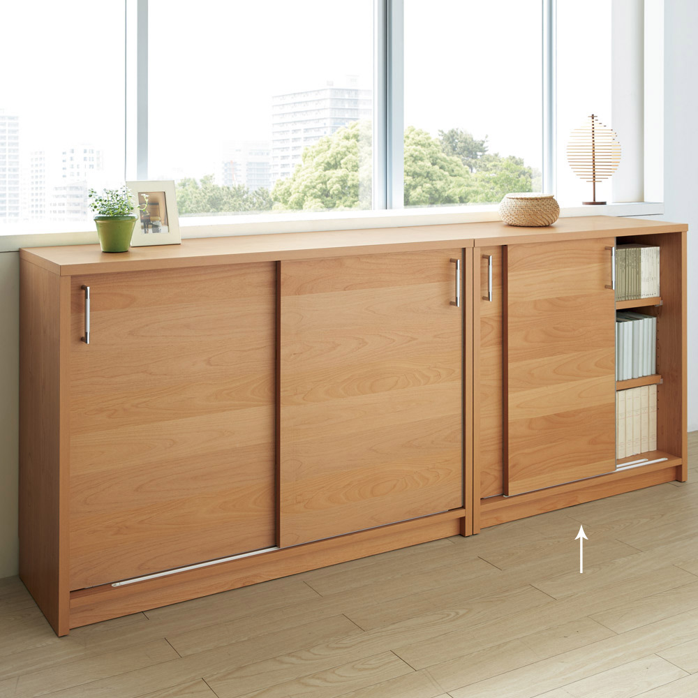 [完成品・国産]本を永く、大切に扱いたい方へ。木目が美しいアルダー天然木を使用した、贅を尽くした本棚です。お部屋を柔らかな印象に彩る贅沢書庫。引き戸で省スペースながら工夫満載、大量収納が可能です。〜本を大切にする人のための、贅を尽くした造り〜細部までこだわった丁寧なつくりで、永きにわたって本を大切に収納いただけます。写真集や洋書、思い出のアルバムや新書など…お気に入りの本を「ずっと大切に」するために必要な要素をたくさん集めました。美しい木目のアルダー材がお部屋を彩る、贅沢な仕様の書棚です。【POINT 1】「ずっと大切にしまう」ための機能◎本の大敵、光やホコリもをシャットアウト!引き戸は閉めても隙間ができてしまうことがあるのですが、こちらの本棚には扉の縁にブラシがついており、隙間をシャットアウトします。◎棚板耐荷重約30キロで頑丈なつくり頑丈な棚板を採用。また、棚板が外れにくい金具を使用しているため、安心してご利用いただけます。◎大判の写真集も収納可能奥行き内寸28センチで、文庫本から大判の本までたっぷり収納頂けます。【POINT 2】「部屋を彩る」デザイン◎アルダー材を贅沢に使いました戸全面は、アルダー天然木化粧合板をあしらいました。美しい木目がリビングや書斎、オフィスを彩る、扉付き本棚です。北欧調の柔らかな雰囲気に。◎スタイリッシュなシルバーの取っ手がおしゃれシルバーの取っ手が木目の中のアクセント。スタイリッシュなワンポイントになります。【POINT 3】省スペースにも置きやすいスリム設計◎使用時も場所をとらない引き戸引き戸で薄型デザインのため、狭い場所でも使いやすいブックシェルフです。廊下や子供部屋、ダイニングなどでもお使いいただけます。◎壁にぴったり設置ができます幅木よけカットが施されており、壁にぴったりとつけて、無駄なスペースができないように工夫しております。【POINT 4】国産ならでは丁寧な仕上げ◎安心の日本製。熟練の職人が丁寧に仕上げました家具の名産地、九州大川の職人による丁寧な仕上げ。◎完成品で、届いてすぐにお使いいただけます時間のかかる組立は不要で、女性でも安心してご注文頂けます。◎シリーズ商品も合わせてご検討くださいハイタイプと上置きを組み合わせれば、造り付けのような壁面収納に。ロータイプは、窓下やカウンター下の隙間に設置いただけ、FAX台やプリンター台としてもお使いいただけます。