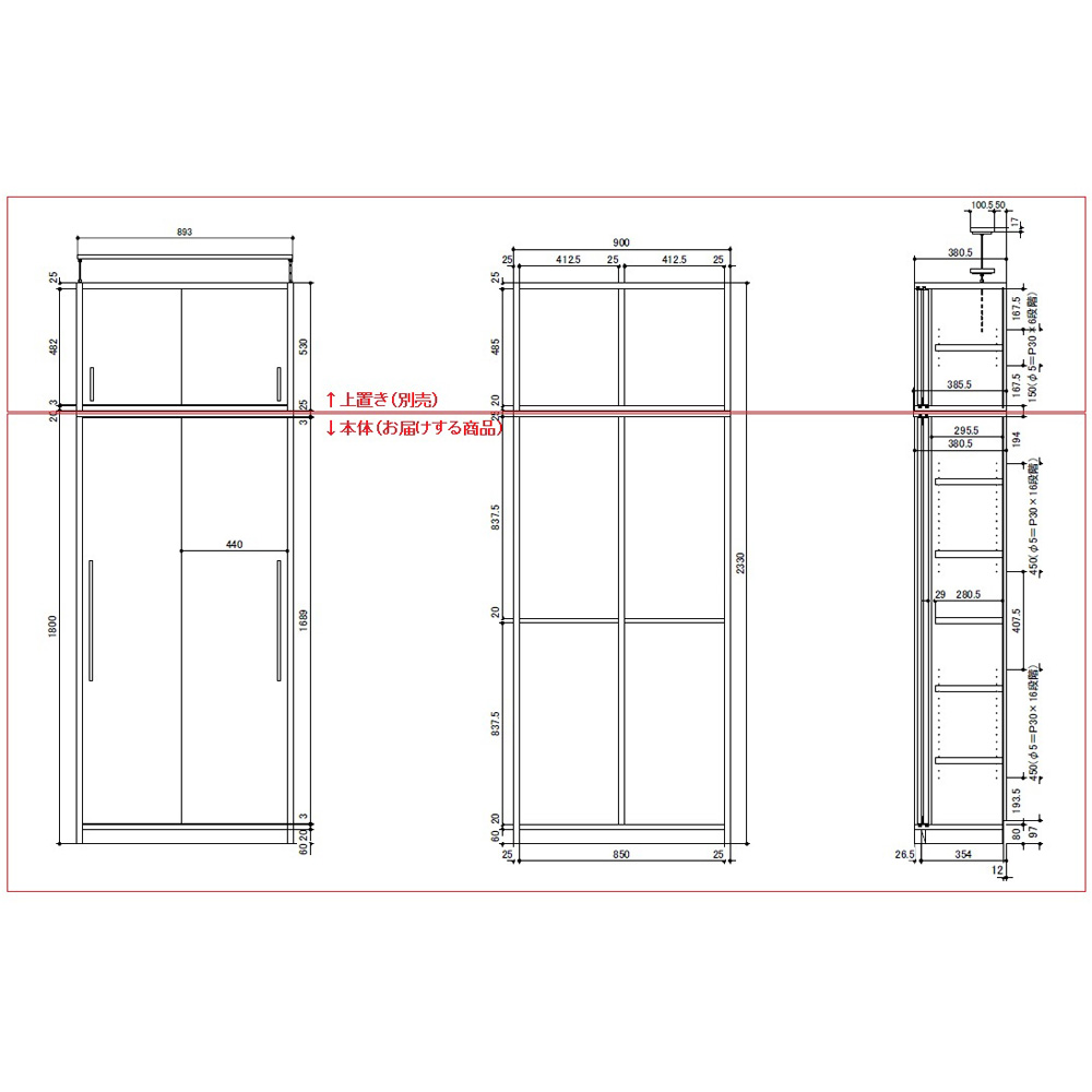 棚板は3cmピッチで可動します。