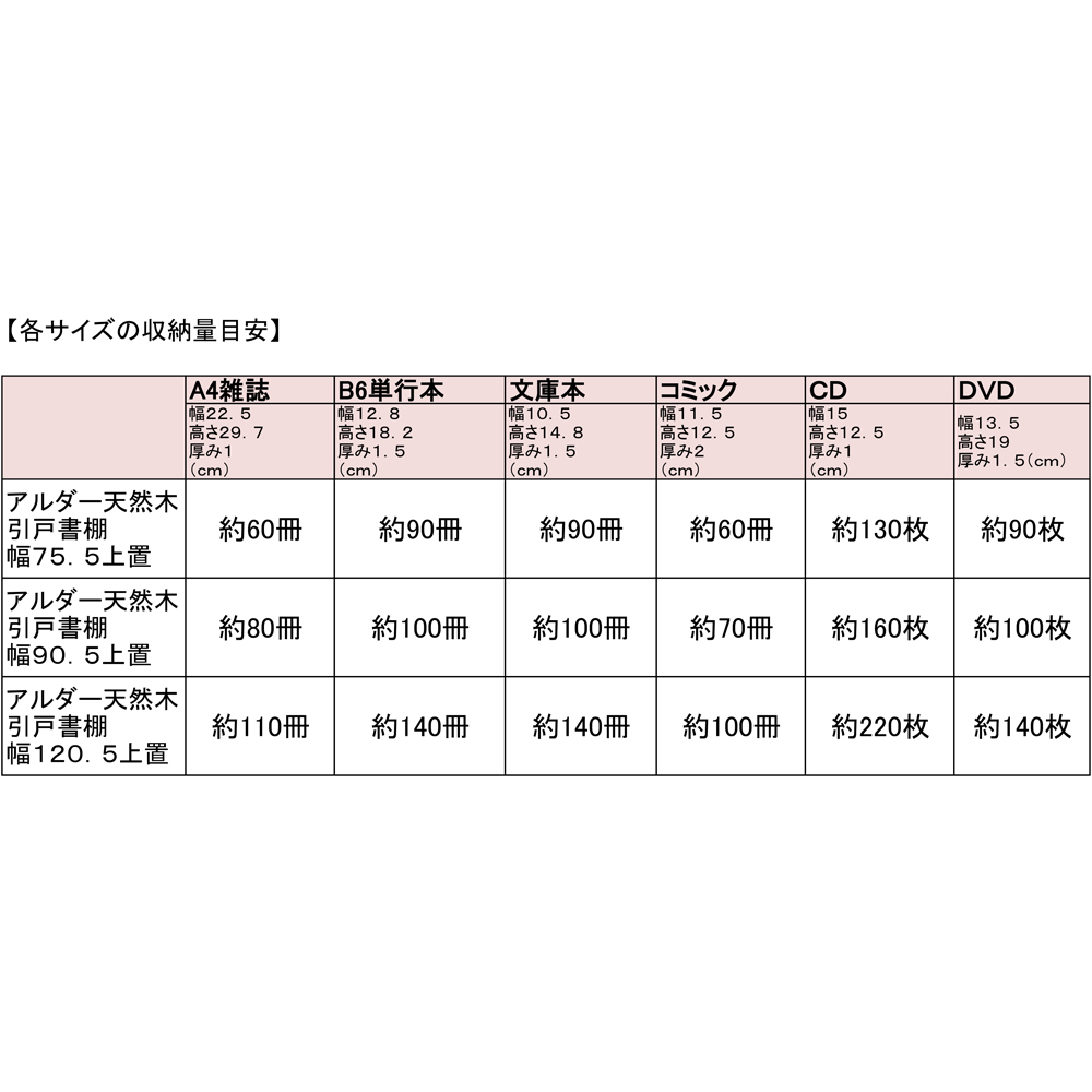 [完成品・国産]本を永く、大切に扱いたい方へ。木目が美しいアルダー天然木を使用した、贅を尽くした本棚です。本体に上置きを組み合わせれば、引き戸で省スペースながら大量収納できる壁面収納書棚に。〜本を大切にする人のための、贅を尽くした造り〜細部までこだわった丁寧なつくりで、永きにわたって本を大切に収納いただけます。写真集や洋書、思い出のアルバムや新書など…お気に入りの本を「ずっと大切に」するために必要な要素をたくさん集めました。美しい木目のアルダー材がお部屋を彩る、贅沢な仕様の書棚です。※こちらの商品は、上置きです。本体ハイタイプと合わせてご検討ください。【POINT 1】「ずっと大切にしまう」ための機能◎本の大敵、光やホコリもをシャットアウト!引き戸は閉めても隙間ができてしまうことがあるのですが、こちらの本棚には扉の縁にブラシがついており、隙間をシャットアウトします。◎棚板耐荷重約30キロで頑丈なつくり頑丈な棚板を採用。また、棚板が外れにくい金具を使用しているため、安心してご利用いただけます。◎大判の写真集も収納可能奥行き内寸28センチで、文庫本から大判の本までたっぷり収納頂けます。【POINT 2】「部屋を彩る」デザイン◎アルダー材を贅沢に使いました戸全面は、アルダー天然木化粧合板をあしらいました。美しい木目がリビングや書斎、オフィスを彩る、扉付き本棚です。北欧調の柔らかな雰囲気に。◎スタイリッシュなシルバーの取っ手がおしゃれシルバーの取っ手が木目の中のアクセント。スタイリッシュなワンポイントになります。【POINT 3】省スペースにも置きやすいスリム設計◎使用時も場所をとらない引き戸引き戸で薄型デザインのため、狭い場所でも使いやすいブックシェルフです。廊下や子供部屋、ダイニングなどでもお使いいただけます。◎上置きは、突っ張り式で安心面で支える突っ張りタイプのため、安定して設置いただけます。【POINT 4】国産ならでは丁寧な仕上げ◎安心の日本製。熟練の職人が丁寧に仕上げました家具の名産地、九州大川の職人による丁寧な仕上げ。◎完成品で、届いてすぐにお使いいただけます時間のかかる組立は不要で、女性でも安心してご注文頂けます。◎シリーズ商品も合わせてご検討くださいハイタイプと上置きを組み合わせれば、造り付けのような壁面収納に。ロータイプは、窓下やカウンター下の隙間に設置いただけ、FAX台やプリンター台としてもお使いいただけます。