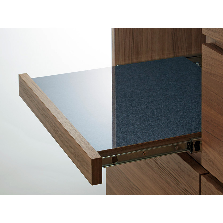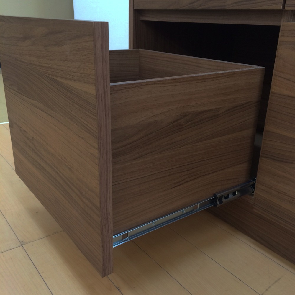 引き出しの内部・外側まで本体と同じウォールナット調で仕上げた、こだわりのデザイン。