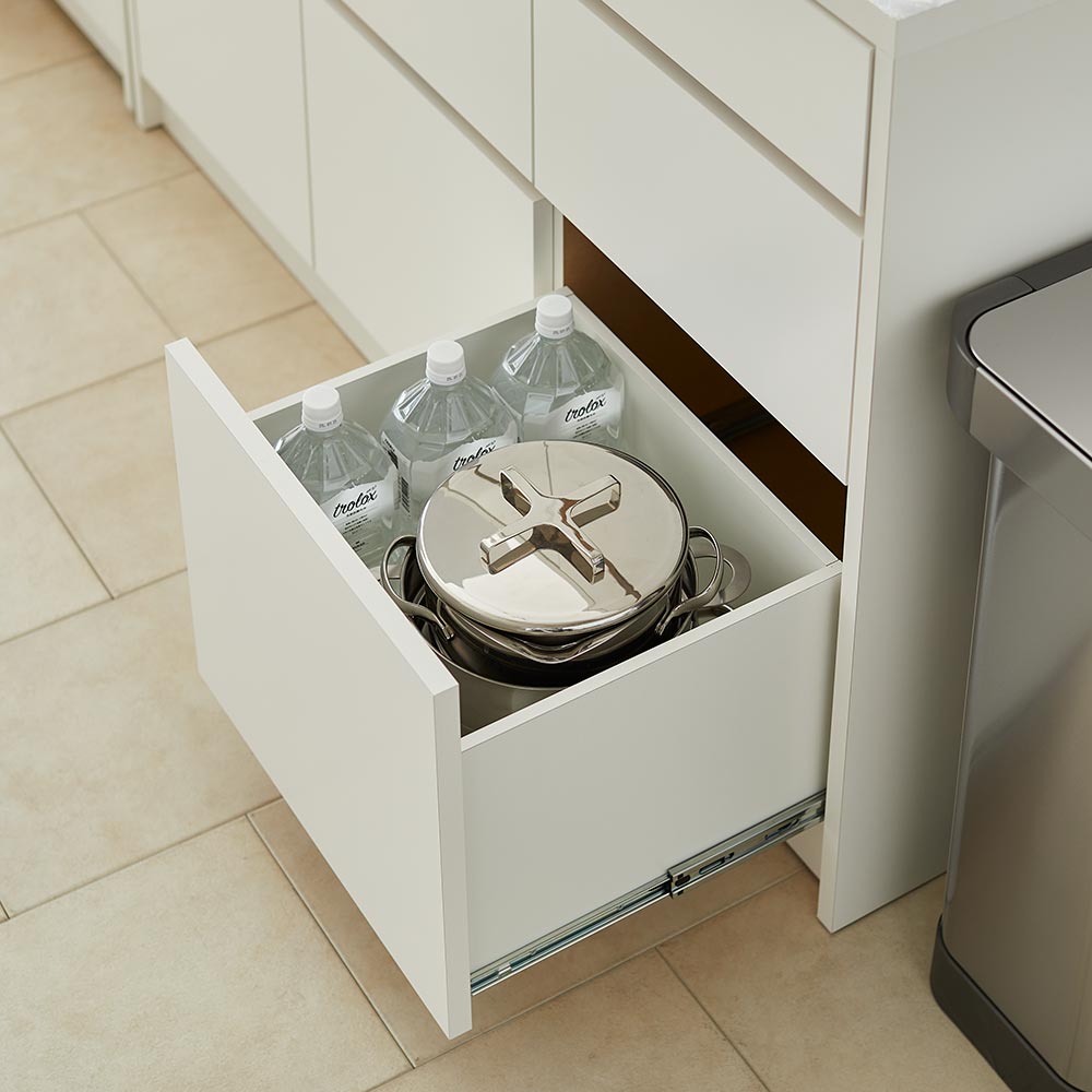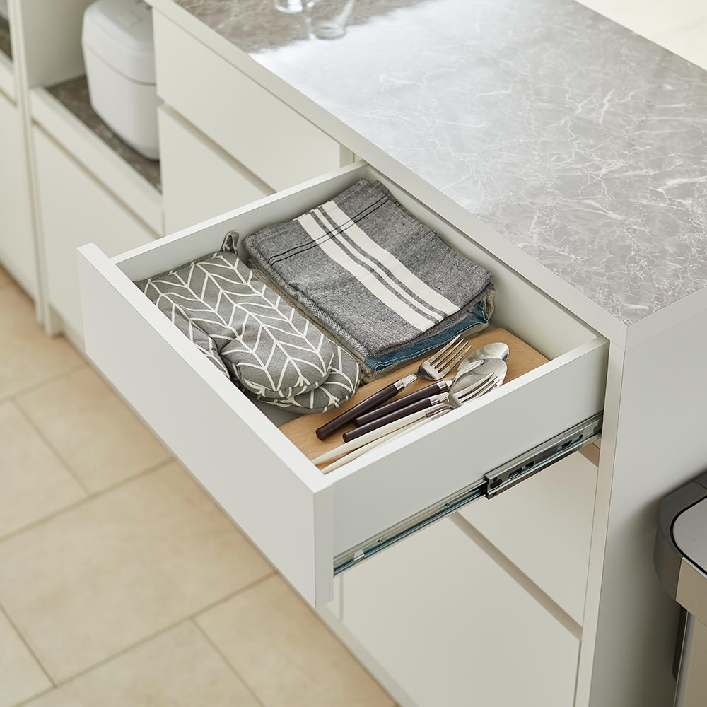 炊飯器など、蒸気の出る家電を収納できる家電用スライドテーブル。フルスライドレールを採用し、奥までしっかりと引き出すことができます。