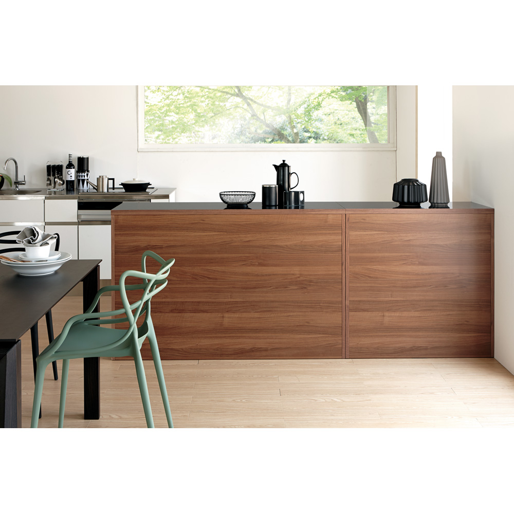 裏面もきれいな間仕切り仕上げ。ダイニングキッチンの真ん中に置いても様になる高いデザイン性が魅力。(写真は幅90と幅140を組み合わせています)