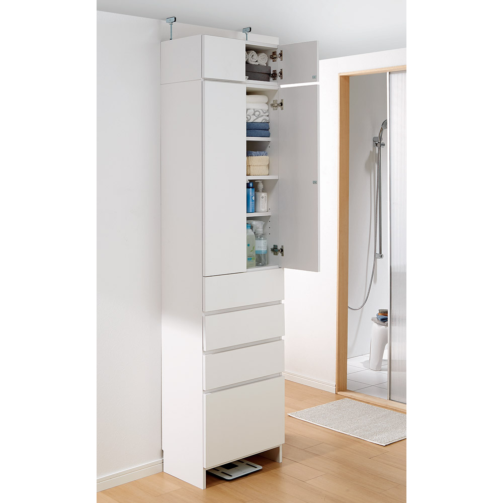 組立不要 奥行31.5cm薄型サニタリーチェスト・幅50cm用の専用上置きです。天井まで収納を増やすことができます。対応天井高は204〜224cmです。●組立不要 奥行31.5cm薄型サニタリーチェスト・幅50cm用の専用上置きです。●限られた空間を生かして、天井近くまで収納を増やすことができます。【ご注意】必ず本体と一緒にお買い求めください。