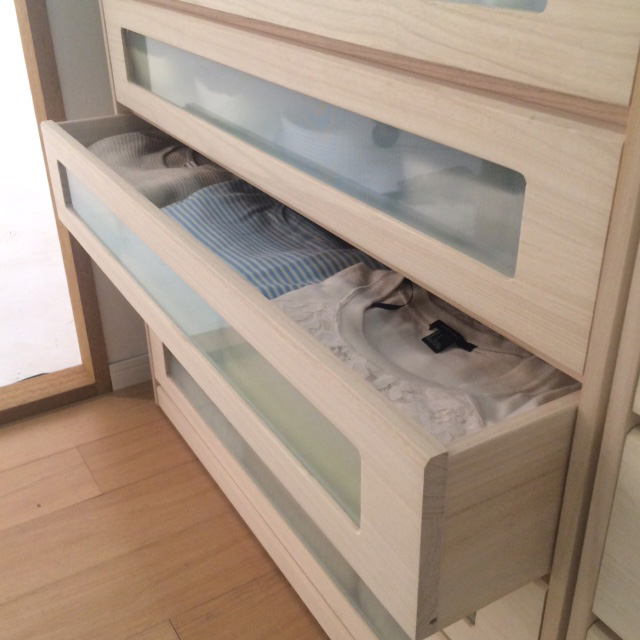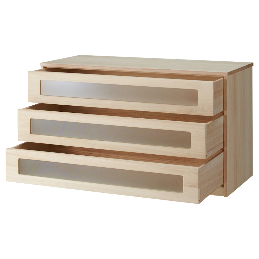 日本伝統の「桐」と、モダンな「ミストガラス」の融合で、まるで海外のファッションブティックのような洗練されたクローゼットが実現。収納物が見やすく、キャスター付で移動やお掃除もラクラク。実用性も兼ね備えた、桐の新スタイルです。あなたのセンスが光る、スタイルのあるクローゼットが実現。■開けるために幸せな気分の膨らむ、上質で華やかなクローゼットを手に入れませんか?■暗いクローゼット空間では、お気に入りの衣類も探しにくく大変。前板がミストガラスなので、外の光を取り込み全体が明るくなります。■毎日に快適な彩りを添え、空間のアクセントになります。■大切な衣類を美しくディスプレイしながら収納できる、新たな収納のかたちです。■色のトーン別に収納すると、美しいグラデーションがガラス窓に映りおすすめ。■毎朝のファッションコーディネートが特別で、贅沢な時間に。ほのかに透けるミストガラス窓■商品の前板には、3mm厚のミストガラスの窓付き。■中身ははっきり見えず、収納物の存在は感じられる適度な透け感です。■クローゼットだけでなく、部屋置きしても、圧迫感なくすっきり設置できます。大切な衣類は、桐に仕舞う習慣を。■桐は古くから、湿気や虫に強く、着物などの収納に永く使われてきました。■着物だけではなく、大切な衣類やショールなどは、桐に収納するのがおすすめです。■大切な衣類は保管して守り、長く使っていきませんか。幅と高さを選んで「ぴったり」が実現。■幅は58、75、100cmの3タイプ。■高さは、3段(59.5cm)、4段(76.5cm)、5段(94cm)の3タイプ。■豊富なサイズ展開からぴったりなサイズをお求めください。■隠しキャスター付き。移動やお掃除もラクラク、衣類の整理や収納にも便利です。■収納部内寸:奥行37.5高さ13.5cm(全サイズ共通)安心の日本製、国産家具■日本の桐職人が桐材を厳選し、丹精込めて造り上げました。■長く使うものだから、拘り抜かれた高品質の商品をお楽しみください。■完成商品なので、届いたらすぐに使えるのもおすすめポイントです。※キャスターはお客様にて取り付けをお願いしております。簡単な作業ですが、有料で取り付けサービスもご利用いただけます。ご希望の場合は注文時にご指定ください。