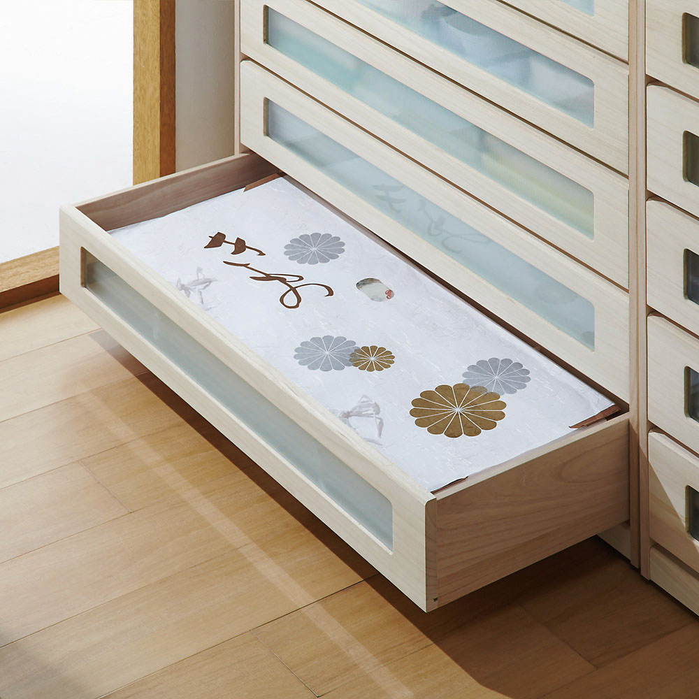 引き出しの内寸は幅93奥行37.5高さ13.5cm、着物を大切に保管できます。