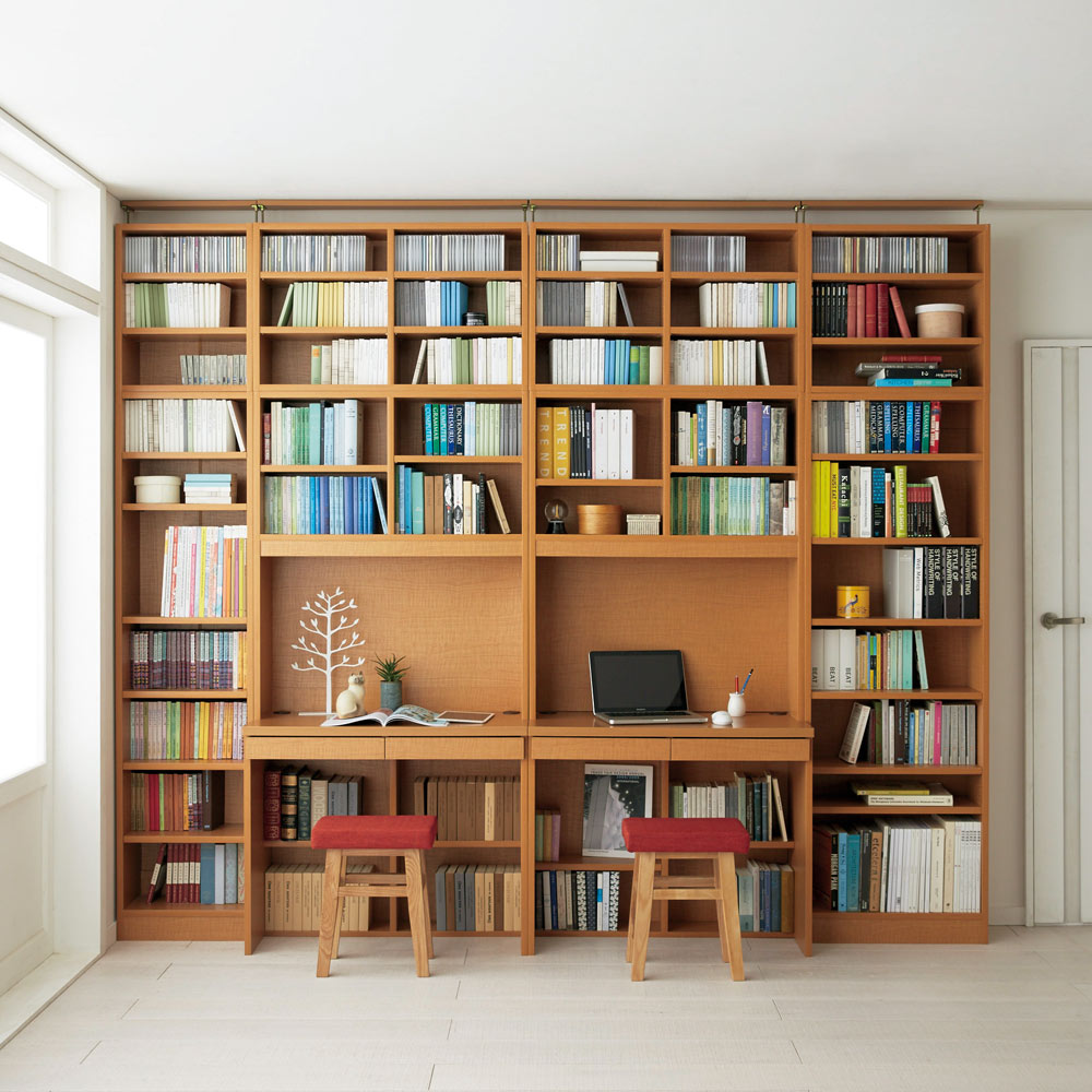 収納力抜群!棚板は1.5cmピッチで調整できるので様々な本をインテリアのように収納できます。フルオープン設計で、検索性も抜群の壁面収納が完成します。抜群の収納力!読書家の為のプライベートライブラリー◆机と本棚(書棚)が一つになりました。まるで図書館のような空間を実現。◆フルオープンなので飾り棚のように使っても◎◆棚板一枚当たりの耐荷重も20kgと安心の頑丈設計で、収納力にとことんこだわりました。◆1.5cmピッチの可動棚は棚の位置をすべて決められるのであらゆる大きさの本に対応します。◆デスク周りは、いつの間にか書類や雑誌、本が山積みになってしまいます。 書類に囲まれた作業効率の下がる空間が、分別収納が可能となり業務効率も上がる空間に!◆デスクとシェルフと組み合わせて設置すれば、設計事務所のようなスペースが生まれます。◆上置きも組み合わせて壁面収納に。本に囲まれる夢のような空間が完成します。◆広々としたデスク天板なので、パソコン周辺機器もひとまとめにできるPCデスクとしても活躍。◆配線穴(デスクのみ)や電源タップ収納(デスクのみ)など、読書以外の使いやすさにも配慮した システムデスクをお求めやすい価格でお届けいたします。【ラインナップ】[色の種類]◆清潔感があり、部屋を明るい印象にするホワイト。◆人気の北欧風のオシャレなお部屋にもぴったりのナチュラル。[サイズ・バリエーション]◆パソコンデスク:幅60cm、90cm、120cm。1.A4サイズも入る引出付。小物の整理整頓に活躍。2.デスク天板は水や傷、汚れに強いポリエステル化粧合板を採用、高級感があります。3.配線穴、電源タップ収納がついており、配線も簡単。4.デスク上、足元にも本棚があり、デスクのみの使用でも収納がたっぷり。◆シェルフ:幅30cm、45cm、60cm、75cm 1.シンプルなオープンタイプでコレクションを飾って、飾り棚のようにも使えます。 棚板は1.5cm間隔で動くのでコミック(漫画)やCD・DVD、文庫本など様々な大きさに対応。 2.デスクと横連結をしてご使用いただけます。◆上置き:幅30cm、45cm、60cm、75cm、90cm、120cm1.上置きタイプは、天井高さに制限されること無く設置できるのが特徴。2.天井つっぱり式は、天井高さ239cm〜252cmの天井にジャストフィット。魅惑の収納力と安定感があります。国内の職人が海外製品には負けないよう品質管理にも配慮して丁寧に仕上げております。安心して使っていただける国産家具です。組立家具ならではの価格も魅力の本好きのためのデスクシリーズ、ぜひお買い求めください。