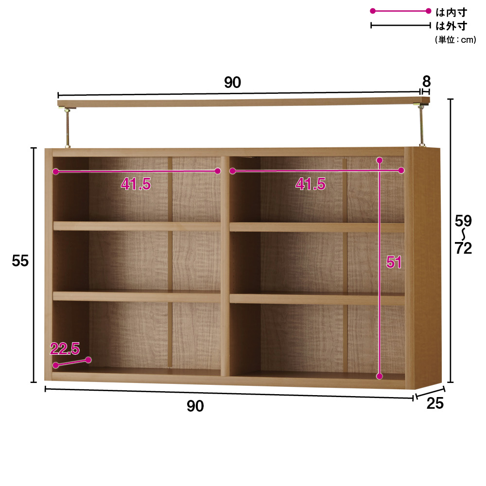 (イ)ナチュラル 上置きも1cm間隔で調整できる可動棚板です。
