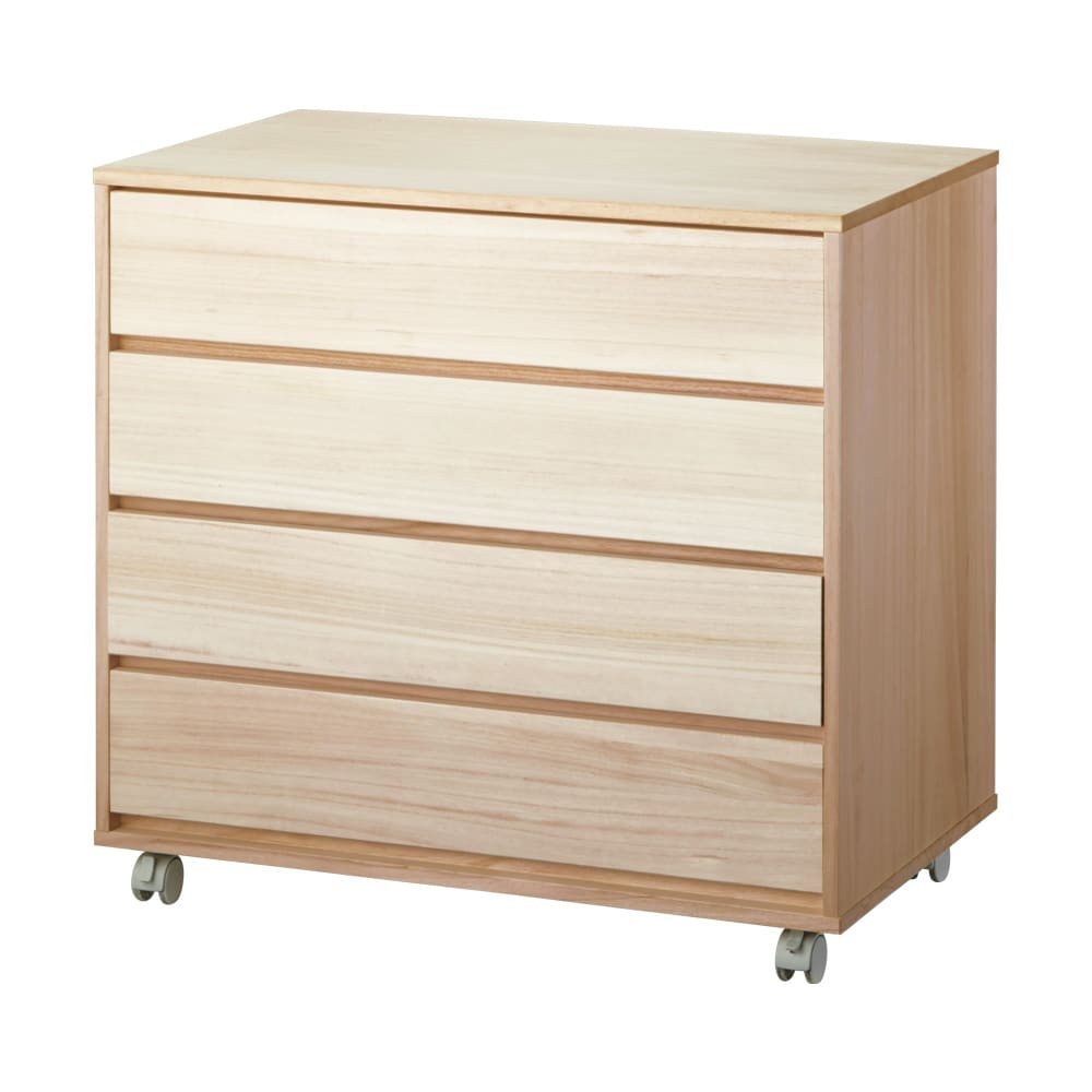 上品な桐天然木を使用したキャスター付きローチェスト。大切な衣類の収納にふさわしい総桐天然木のタンス。キャスター付きなので、移動やお掃除もラクラク。安心の日本製(国産)で、造りも頑丈です!キャスターを取り付けるだけで、すぐにお使いいただけます。日本の伝統が生んだ総桐チェスト●素材は細部にまでこだわった総桐仕様。背面にも桐材を使用しています●表面は、桐本来の美しさを活かしかつ汚れにくい、伝統的なろう引き仕上げを施しました●奥行44cmのクローゼットにピッタリのキャスター付きチェスト。深引き出し3段タイプと引き出し4段タイプもあります随所に光る使いやすさのポイント●引き出し内部も衣類をしまうのにぴったりな総桐仕様。大切な衣類の収納にお使いください●引き出しは取り外し可能なので入れ替えも可能です。衣替えもあっという間に完成します●キャスター付きなので、お掃除の時などの移動も楽々。押し入れやクローゼット収納にぴったりです●キャスターを外してもお使いいただけます一つ一つ丹精こめて作られた日本製です●熟練の職人が細部まで丁寧に仕上げた日本製です。●発売以来、ご好評いただいている人気の総桐チェストです。●完成品でお届けしますので、キャスターをつければすぐにお使いいただけます。〜お客様から続々と喜びの声が届いています●押入れの奥行にぴったりで前面に向けて引き出しがあるのを探していました。(今まで持っていたのは外形は同じサイズでも、幅広で横向きの引き出しなので、キャスターでタンスごとひきださないと中身を取り出せなかった)帯を畳紙のまましまえて大満足。桐たんすとしては気密性はいまいちですが、このお値段ですから。これならこまめに引き出しを開け閉めでき、カビ発生も防げそうです。(幅44cm 3段タイプを購入 神奈川県)●桐製でこのタイプを探していました。着物を出し入れしやすく、とても良いです。(幅44cm 3段タイプを購入 東京都)