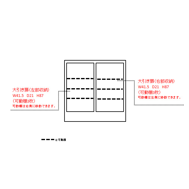 • 可動収納棚板は3cm間隔で調節が可能です。