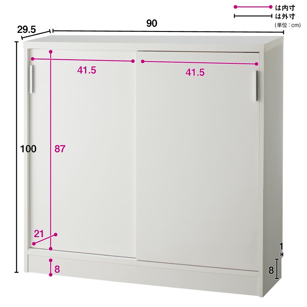 奥行29.5高さ87cmタイプ引き戸式収納庫(お届け商品)幅:90cm、120cm、150cm
