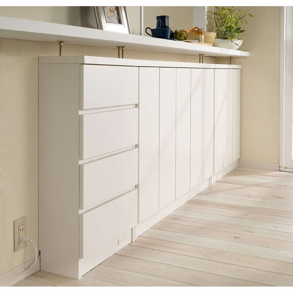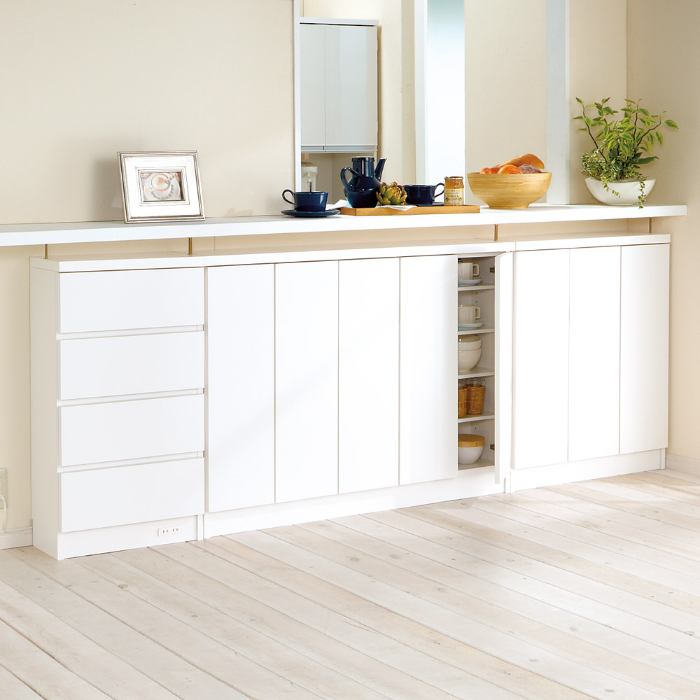 取手のないフラットなデザインはまるで備え付け家具。スマートな奥行の薄型チェスト。金具付きでカウンター下に突っ張れば前倒れを防止します。本棚や食器、CD、DVD収納として隙間を有効に活用。取手のないフラットなデザインはまるで備え付け家具のようなおしゃれさスマートな奥行のラック・シェルフシリーズ。取手のないフラットなデザインなのでお部屋に馴染みます。突っ張り金具付きでカウンター下に突っ張ることができ前倒れを防止します。金具は取り外せば窓下などにもお使いいただけます。薄型収納庫は本棚や食器、CD、DVD収納として隙間を有効活用できます。取手のないフラットなデザインでインテリアを選ばないベーシックさが魅力◆扉は軽く押すと開くプッシュ式の扉を採用しました。◆シンプルなデザインなのでお部屋に馴染みます。前倒れ防止の突っ張り金具付きのカウンター下収納◆突っ張り金具付きでカウンター下に突っ張ることができ前倒れを防止します。◆金具は取り外せすことが出来るので、窓下などにもお使いいただけます。キッチンカウンター下にピッタリな薄型で空間を有効活用できるアイデア収納。◆スリムな薄型収納で、キッチンカウンター下のデッドスペースにもピッタリ収まります。◆薄型でも収納力たっぷり。中皿や小鉢、買い置きの缶詰や瓶詰をまとめて、食器棚・キッチンストッカーとしてもお勧めの隙間収納です。奥行浅めの薄型収納は、設置場所を選ばずリビング収納・書棚としても。◆薄型収納は窓下や廊下・リビングの空きスペースなど、カウンター下以外のデッドスペースも有効活用できます。◆廊下や寝室などの窓下に設置して書斎・本棚に収まりきらない雑誌収納やCD収納、DVD収納としても。◆リビングの窓下などに設置すれば、FAX台や電話台、ローボード・窓下収納としても活躍。リビングに散らばりがちな小物、生活雑貨をまとめて。表情がやさしく美しい、リアルな木目を再現した食器棚。◆前板には木の表情をリアルに表現した面材を使用し、風合いを大切にして仕上げたキッチン収納です。◆明るくお部屋の壁紙に自然と調和するホワイト色。◆シックな落ち着いた色合いが魅力のウォルナット色。安心と信頼の職人技が光る国産のキッチン収納◆熟練の家具職人がひとつずつ丁寧に仕上げたワンランク上のダイニングボード・食器棚です。◆細部の丁寧な仕上がりなど日本製ならではの高品質なキッチンボード・カップボードをお楽しみください。◆素材はJIS規格の定める安全性の高いF☆☆☆☆を使用しました。面倒な組み立てのいらない完成商品◆完成品でのお届けになりますので届いたその日からお使いになれます。