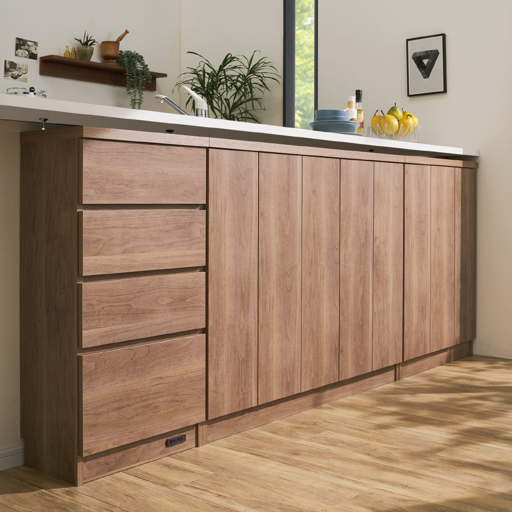 取手のないフラットなデザインはまるで備え付け家具。スマートな奥行の薄型チェスト。金具付きでカウンター下に突っ張れば前倒れを防止します。本棚や食器、CD、DVD収納として隙間を有効に活用。取手のないフラットなデザインはまるで備え付け家具のようなおしゃれさスマートな奥行のラック・シェルフシリーズ。取手のないフラットなデザインなのでお部屋に馴染みます。突っ張り金具付きでカウンター下に突っ張ることができ前倒れを防止します。金具は取り外せば窓下などにもお使いいただけます。薄型収納庫は本棚や食器、CD、DVD収納として隙間を有効活用できます。取手のないフラットなデザインでインテリアを選ばないベーシックさが魅力◆扉は軽く押すと開くプッシュ式の扉を採用しました。◆シンプルなデザインなのでお部屋に馴染みます。前倒れ防止の突っ張り金具付きのカウンター下収納◆突っ張り金具付きでカウンター下に突っ張ることができ前倒れを防止します。◆金具は取り外せすことが出来るので、窓下などにもお使いいただけます。キッチンカウンター下にピッタリな薄型で空間を有効活用できるアイデア収納。◆スリムな薄型収納で、キッチンカウンター下のデッドスペースにもピッタリ収まります。◆薄型でも収納力たっぷり。中皿や小鉢、買い置きの缶詰や瓶詰をまとめて、食器棚・キッチンストッカーとしてもお勧めの隙間収納です。奥行浅めの薄型収納は、設置場所を選ばずリビング収納・書棚としても。◆薄型収納は窓下や廊下・リビングの空きスペースなど、カウンター下以外のデッドスペースも有効活用できます。◆廊下や寝室などの窓下に設置して書斎・本棚に収まりきらない雑誌収納やCD収納、DVD収納としても。◆リビングの窓下などに設置すれば、FAX台や電話台、ローボード・窓下収納としても活躍。リビングに散らばりがちな小物、生活雑貨をまとめて。表情がやさしく美しい、リアルな木目を再現した食器棚。◆前板には木の表情をリアルに表現した面材を使用し、風合いを大切にして仕上げたキッチン収納です。◆明るくお部屋の壁紙に自然と調和するホワイト色。◆シックな落ち着いた色合いが魅力のウォルナット色。安心と信頼の職人技が光る国産のキッチン収納◆熟練の家具職人がひとつずつ丁寧に仕上げたワンランク上のダイニングボード・食器棚です。◆細部の丁寧な仕上がりなど日本製ならではの高品質なキッチンボード・カップボードをお楽しみください。◆素材はJIS規格の定める安全性の高いF☆☆☆☆を使用しました。面倒な組み立てのいらない完成商品◆完成品でのお届けになりますので届いたその日からお使いになれます。