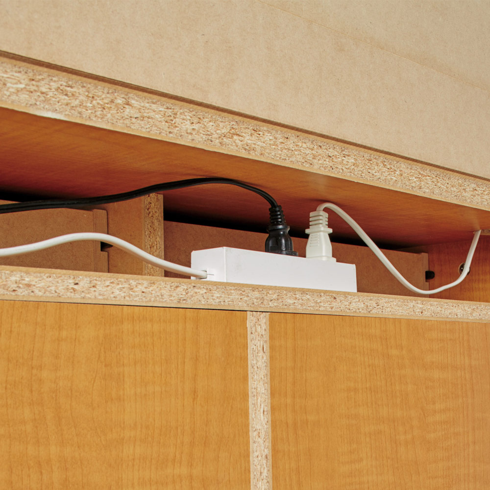 デスク天板奥には配線穴があり、PC作業もしやすい設計です。
