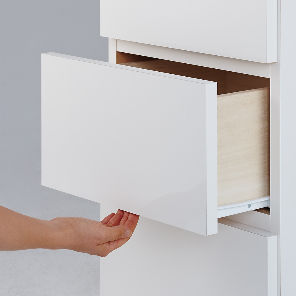 深さのある 上から3・4段目の引き出しにはレールが付いています