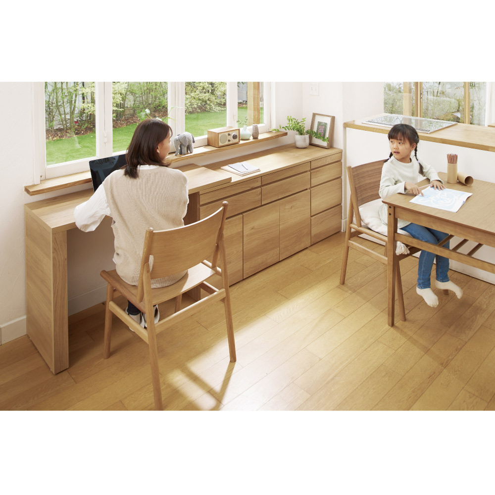 コーディネート例(ア)ナチュラル リビング学習をしているお子様の近くで在宅ワークも。 ※お届けは写真右のチェストです。