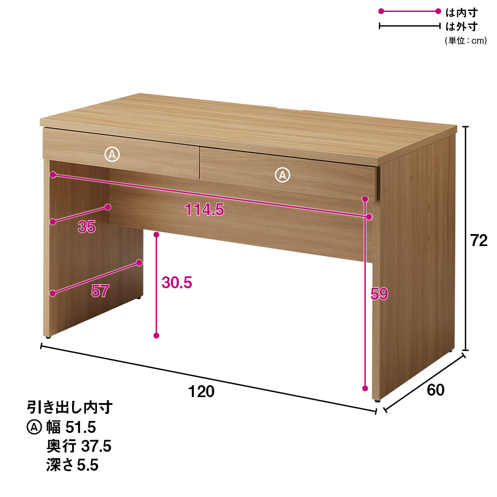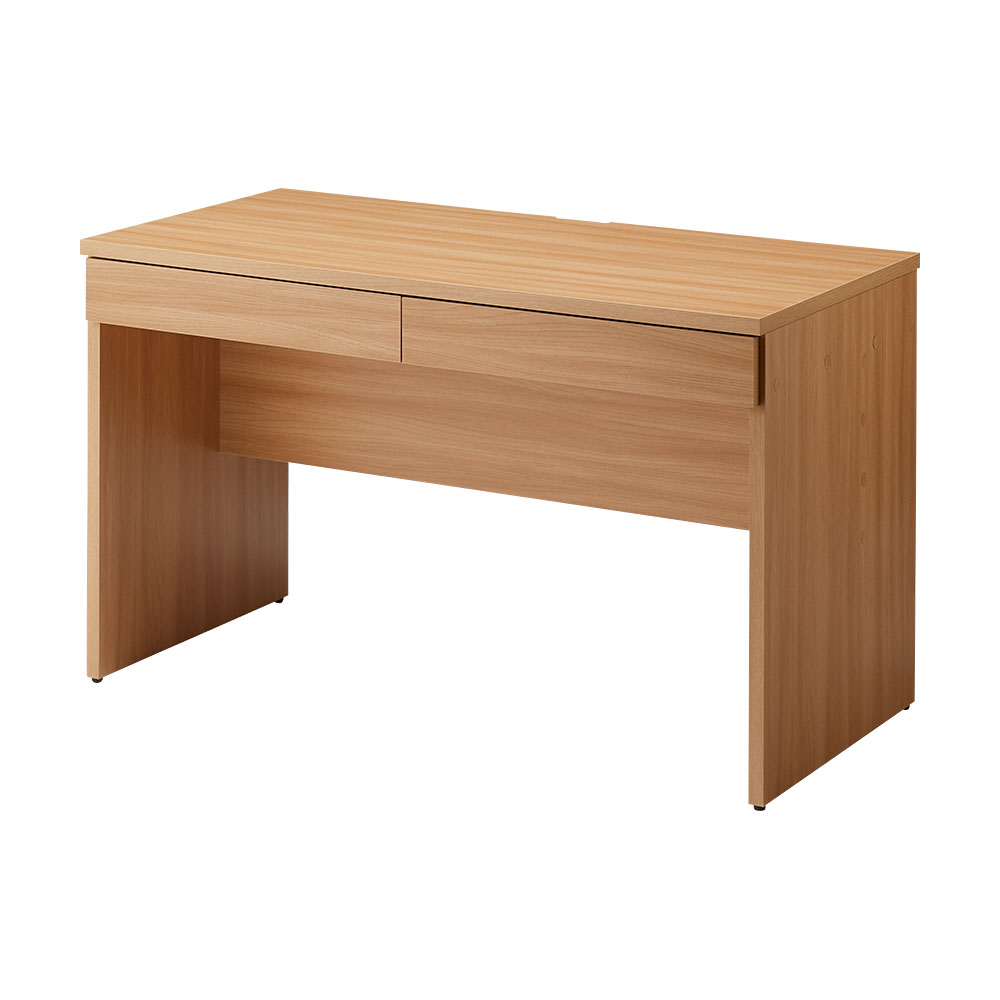 奥行40・50・60・70cm、幅120・150cmから選べるワークデスク。スペースや目的、デスクでの作業量に合わせて、大きさが選べるパソコンデスクです。お好きなサイズの机を選んで空間が有効活用でき、書斎やリビング、寝室などお部屋の動線もスムーズになります。リモートワーク・テレワークにもおすすめ、おしゃれな木目調も魅力。多機能デスクでスペースを最適化作業量や目的に合わせてサイズを選び、書斎、リビング、寝室など、どんな部屋にもフィット。スムーズな動線で快適な作業環境が整います。豊富なサイズ展開でどんなスペースにもフィットお部屋や用途に合わせて選べる全8サイズのPCデスク。薄型から奥行たっぷりのデスクまで自由に選べるので、作業内容に合わせて最適なサイズを選べます。奥行40・50・60・70cm、幅120・150cmから選べ、どんなスペースにもぴったりフィットします。配線すっきり、作業スペースを最大化デスク天板奥に配線かきこみが施されているため、ケーブルの整理が簡単。これにより、作業スペースが広く使え、デスク周りが常にすっきりするので、快適な作業環境を維持できます。ケーブルや電源タップを隠す収納スペース電源タップの収納スペースがデスク背面に設けられているので、配線を隠し見た目もスマートに。整理されたデスク上で作業ができ、ストレスなく集中できる環境を提供します。A4サイズ対応の引き出しで資料整理が簡単デスクの引き出しは余裕を持ってA4サイズの書類を収納できるため、大切な資料や書類をすっきりと整理できます。頻繁に使う書類もすぐ取り出せるので、作業効率を高められます。お部屋に合わせて選べる2色展開落ち着いた木目が高級感を放つダークブラウンはナチュラルモダン・シンプルモダンなお部屋にぴったり。一方、天然木調の明るいナチュラルカラーは北欧風のお部屋や白でコーディネートされた空間のアクセントに最適です。安心と信頼の国産家具こちらの家具は日本国内で製造されており、丁寧な仕上げと高い品質が自慢です。ホルムアルデヒドの発生を最小限に抑えたグレードの素材(F☆☆☆☆)で、お子様のいるご家庭でも安全にご利用いただけます。