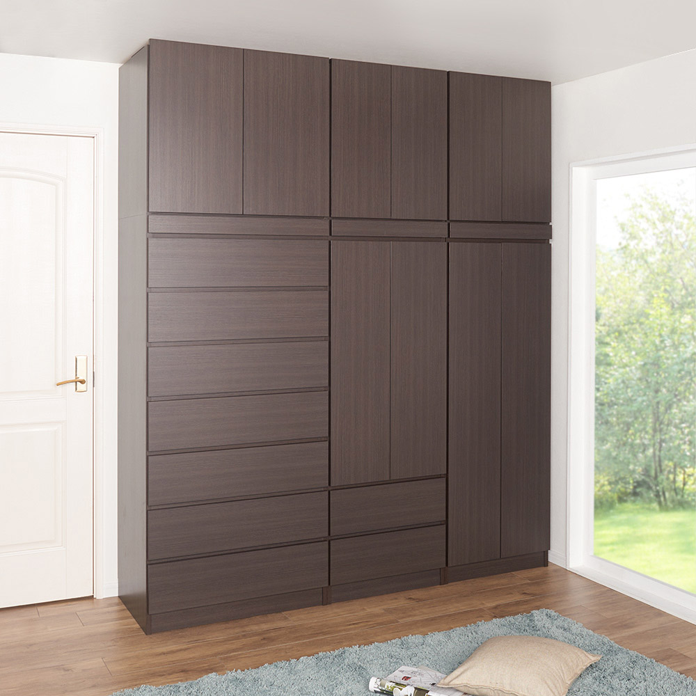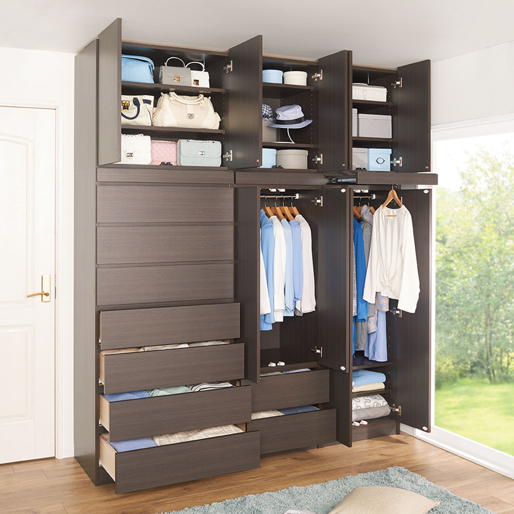 コーディネート例(イ)ダークブラウン ※シリーズ商品の組み合わせで壁一面を壮大なクローゼットにすることもできます。