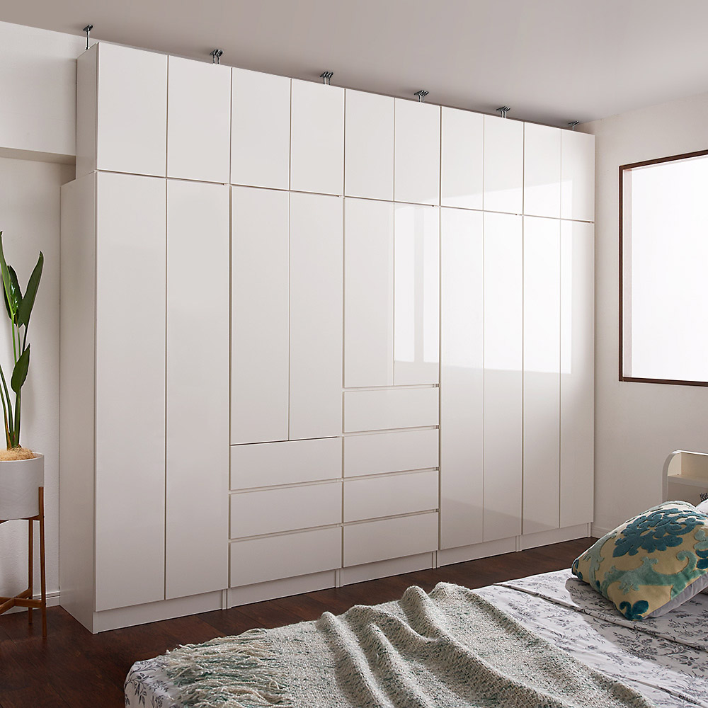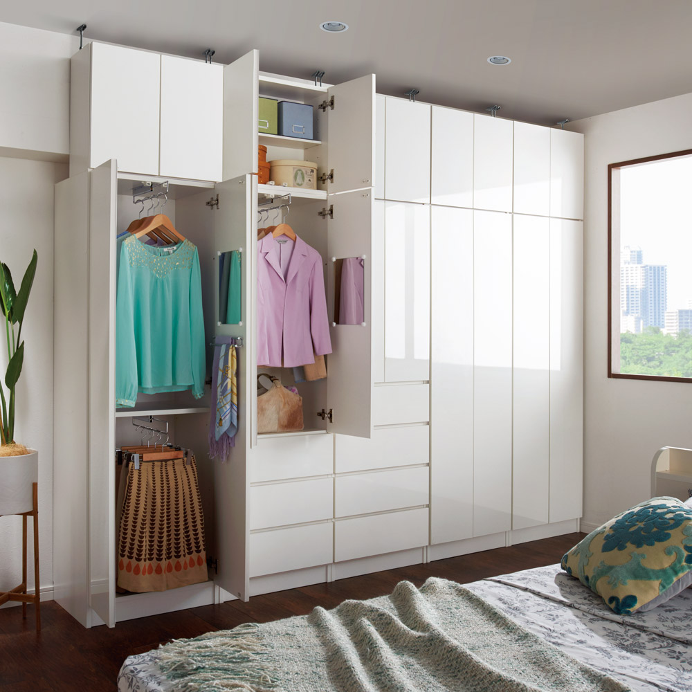 コーディネート例(ア)ホワイト 扉を閉めると光沢が美しい見た目です。 ※写真は天井高さ240cm
