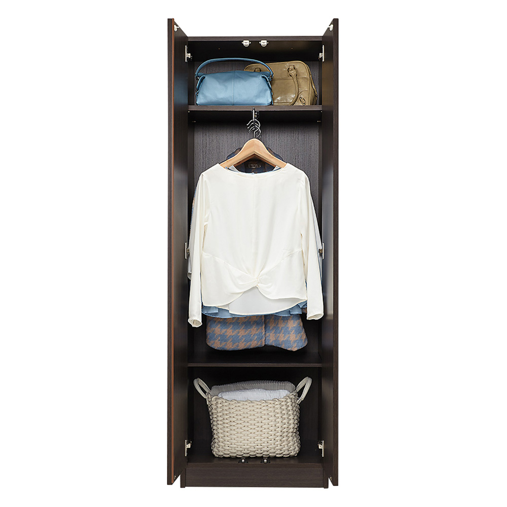 コーディネート例(イ)ダークブラウン(木目調) ※お届けは左から2番目のハンガーロングタイプ(本体のみ)です。 ※写真は天井高さ240cm