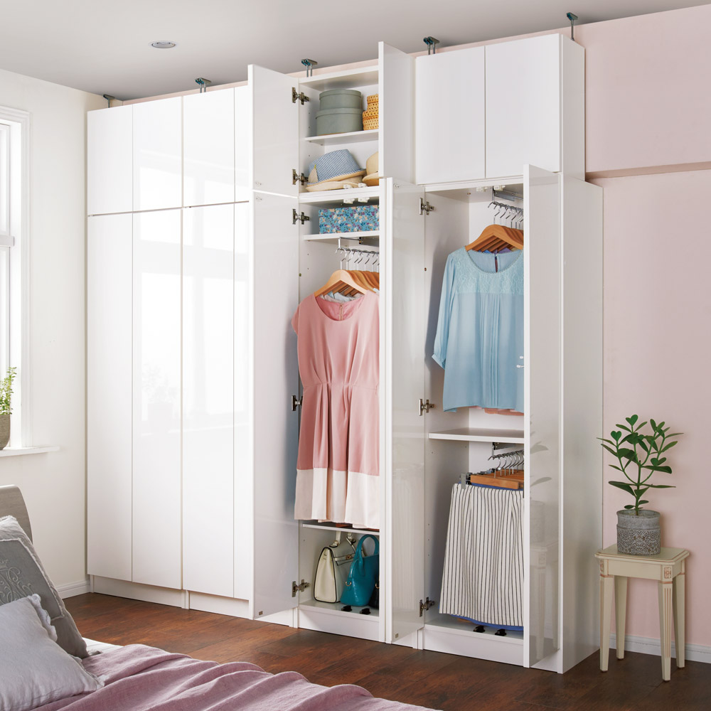コーディネート例(ア)ホワイト ※お届けは右から2番目のハンガーロングタイプ(本体のみ)です。 ※写真は天井高さ240cm