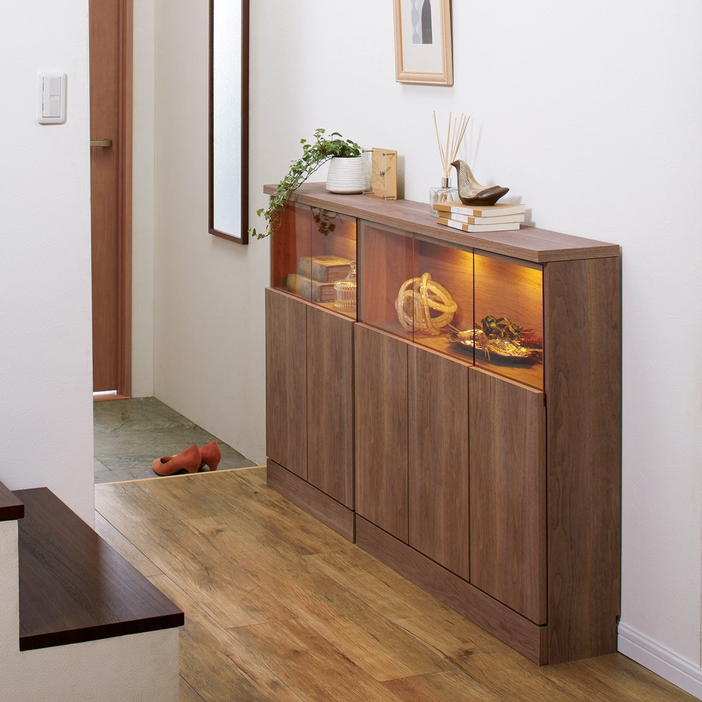 コーディネート例(イ)ウォルナット 省スペースで飾れる薄型奥行き。玄関や廊下階段付近にも。