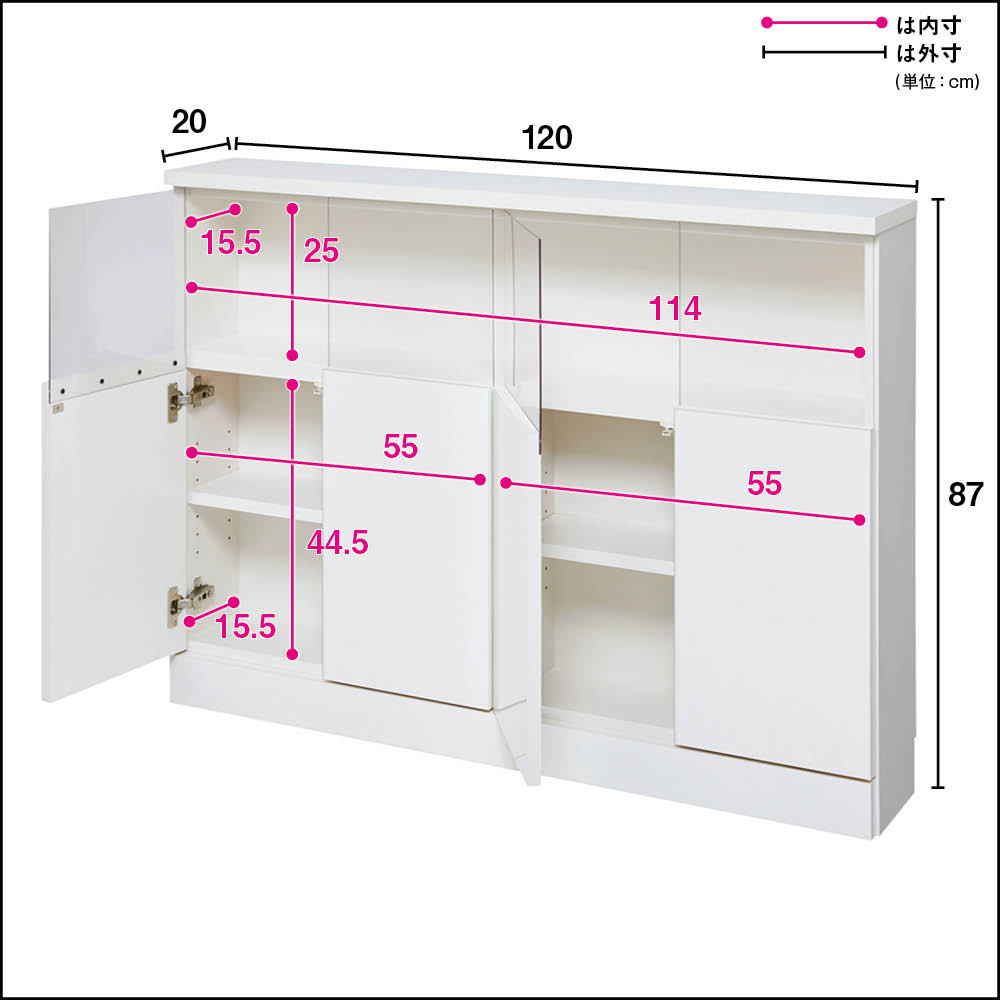 前面の扉は高級感のある光沢仕上げで収納物を美しく隠せます。