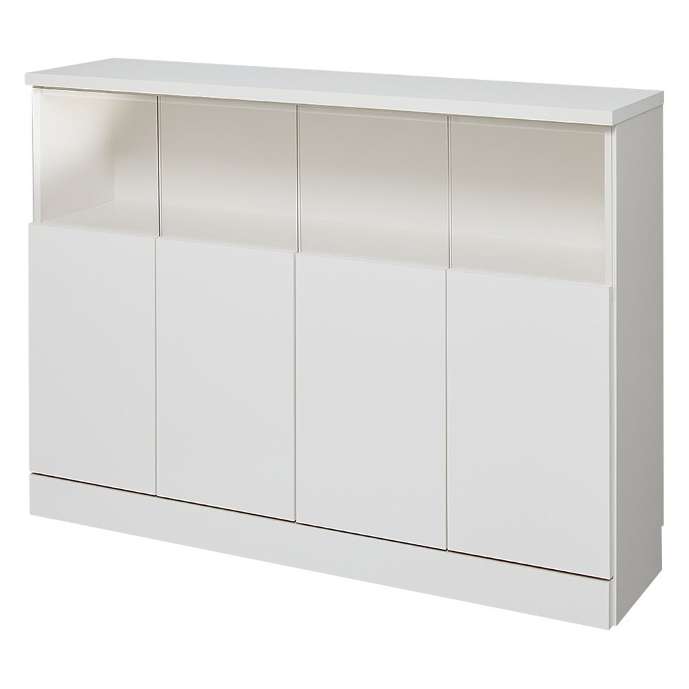 コーディネート例(ア)ホワイト 奥行20cmの薄型はカウンター下にぴったりのサイズです。食器やグラスを美しく飾ることができます。※左から幅90cm,幅60cmの奥行20cmタイプになります。