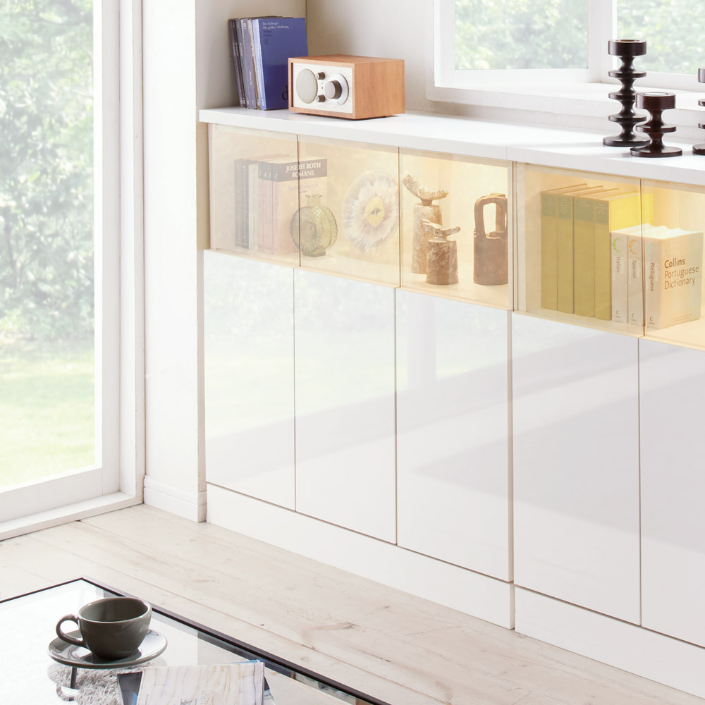 LEDライト×クリア扉で美しく見せるギャラリー収納シリーズです。