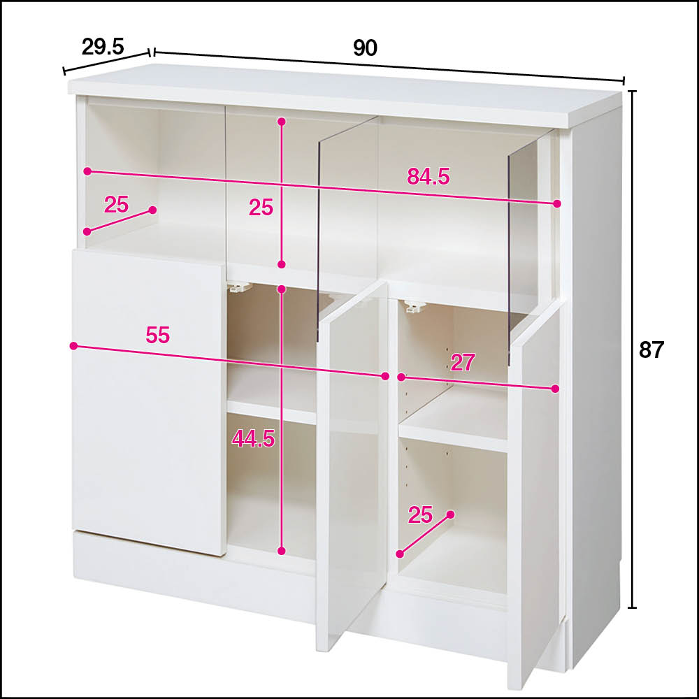 前面の扉は高級感のある光沢仕上げで収納物を美しく隠せます。
