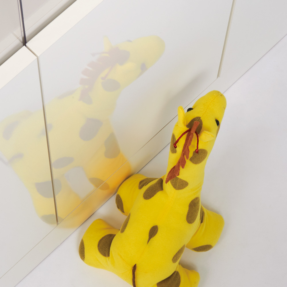 【美しく見せるギャラリー収納】扉には割れにくい樹脂素材を採用。縦仕切りがないので長いものも飾れます。オンオフ可能なLEDライト付き