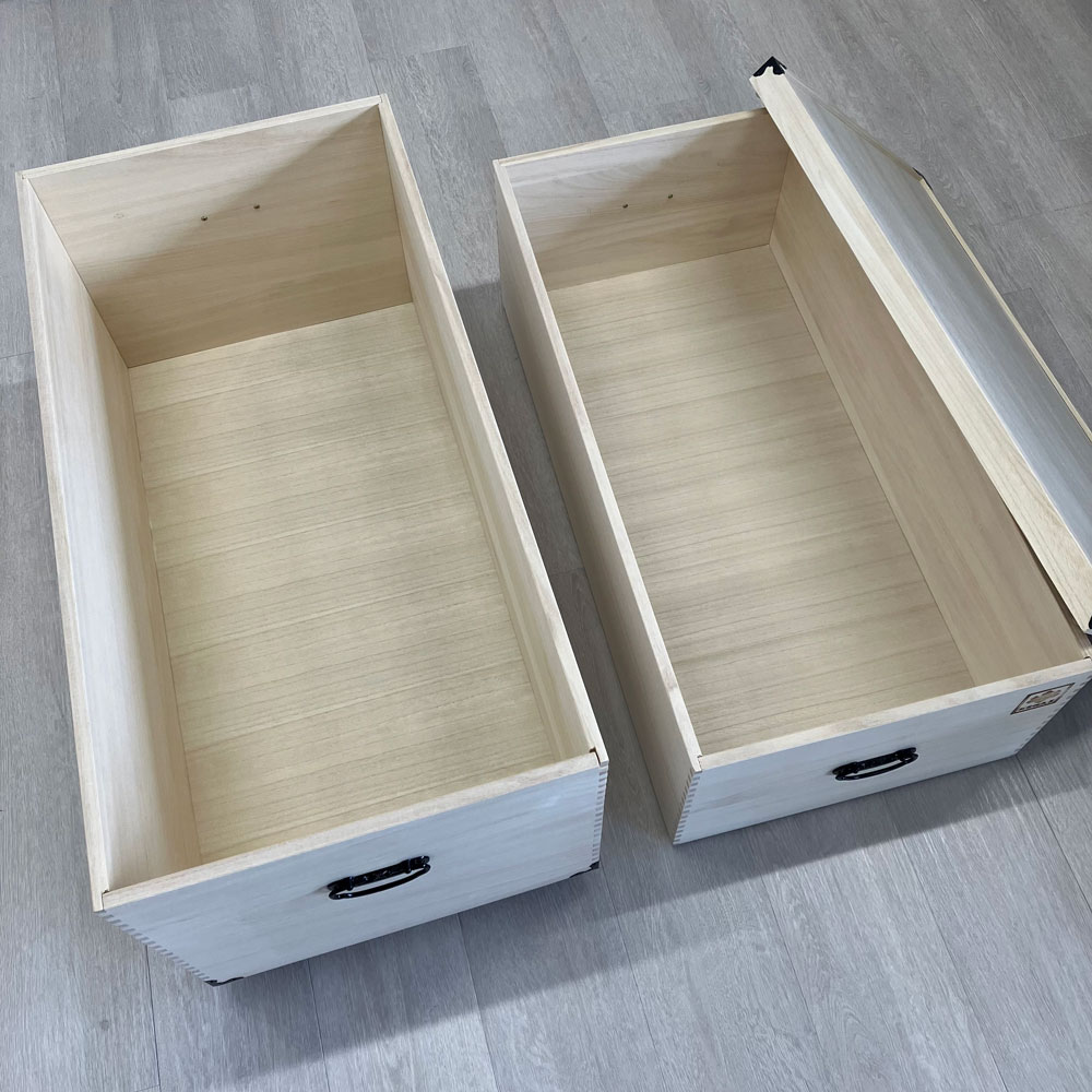 お届けする商品です。雛人形はもちろん、和服や洋服、コレクションなど大切なもののしまい場所として、長期保管も安心の総桐ケースです。