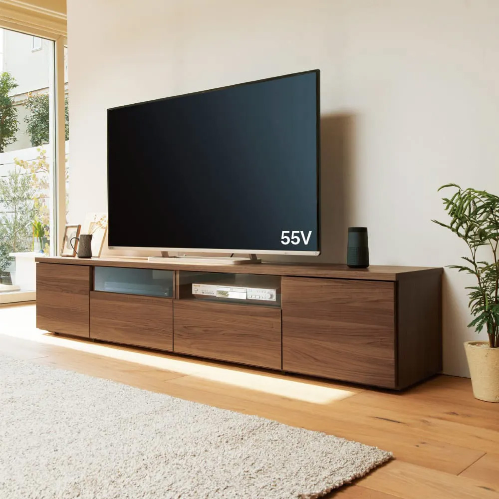 幅144.5cmタイプ (ア)ダークブラウン 大画面テレビ(60インチまで対応)が置ける幅144.5cmのワイドサイズ。移動がラクな隠しキャスター付きで、見た目はすっきり。
