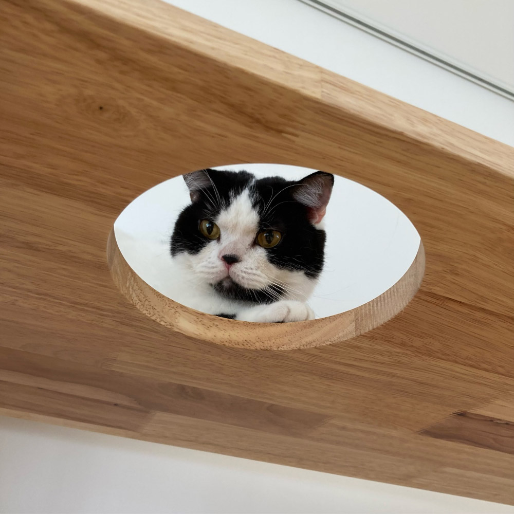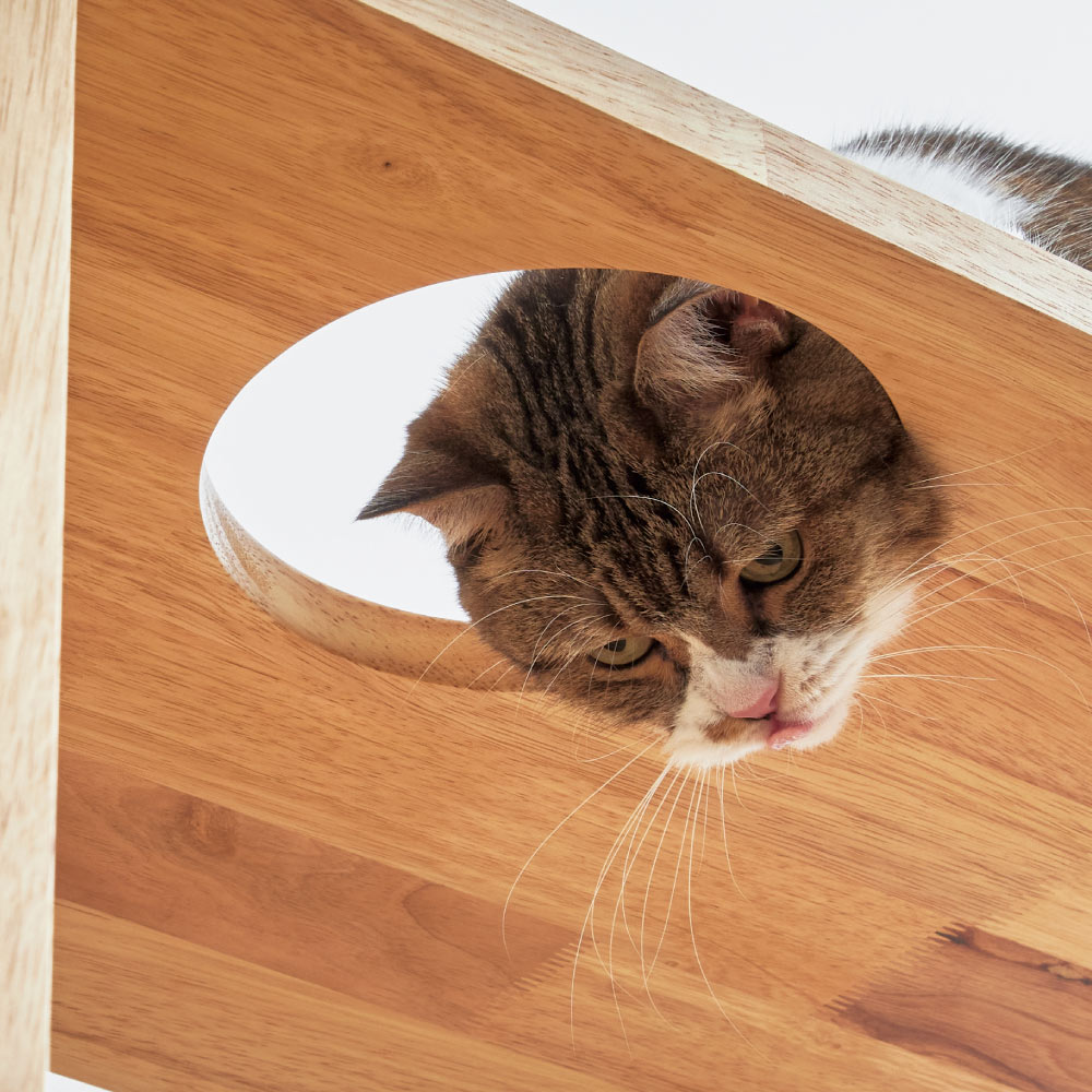 最上段には天板へ登れるよう穴が開いています。
