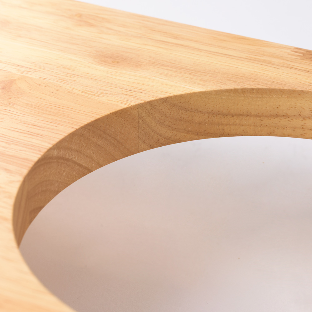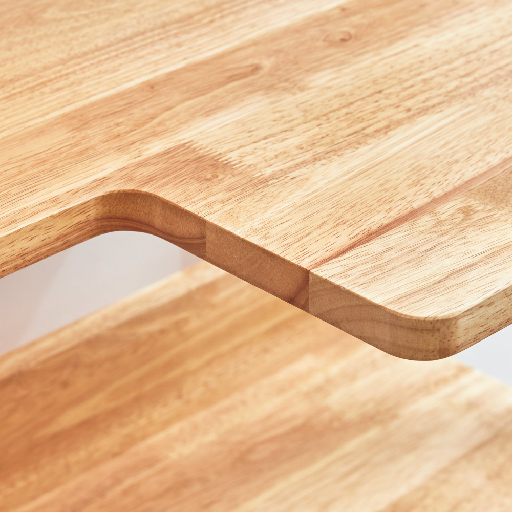 滑らかな肌触りのラバーウッド天然木。汚れにも強いウレタン塗装です。コーナーに丸みを持たせた安全に配慮したつくりです。