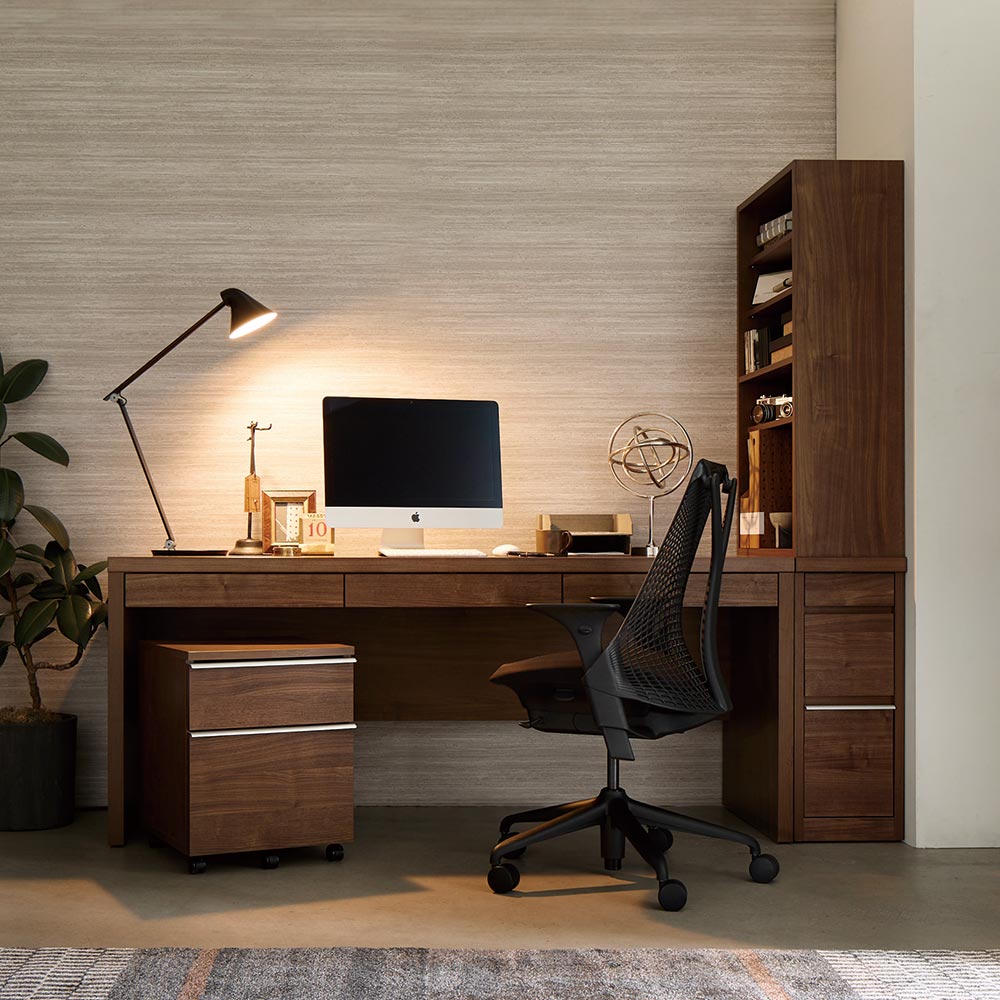 横から見たデザイン。デスクや棚と合わせてお使いいただけます