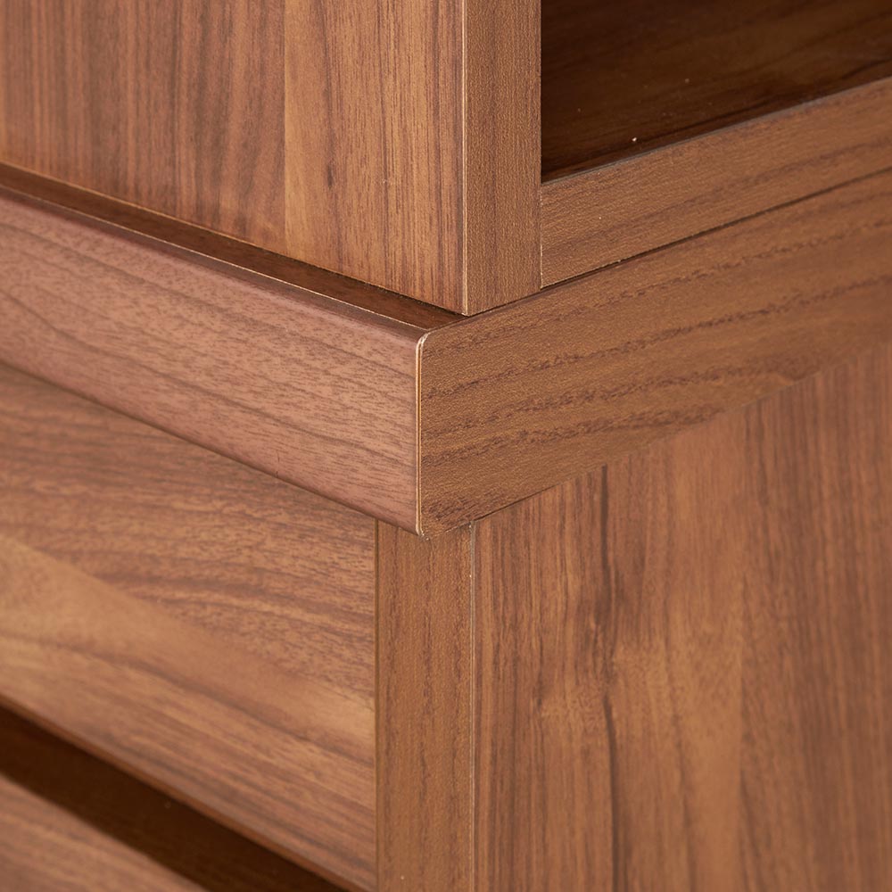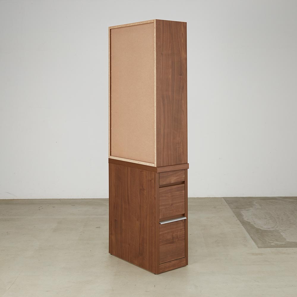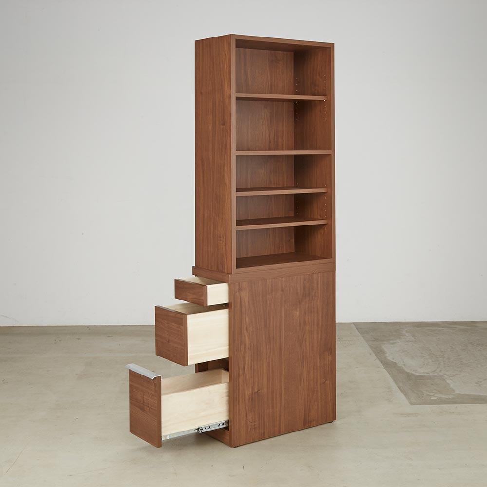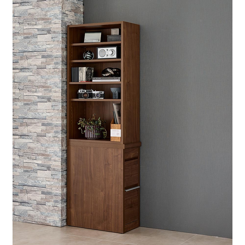 シンプルだからこそ際立つ端正で重厚な存在感のオープンラック(デスクサイドラック)。天然木調にアルミラインがクールな印象を放つ、文房具や書類が分類できる日本製(九州・大川市)引き出し付き収納です。高級感と重厚感を醸し出す天然木調オープンラック(デスクサイドラック)●ウォルナット柄・オーク柄の厚みあるフレームにする事で、 ヨーロッパのモダン家具のようなデザインに仕上げています。●書斎や趣味部屋、ホームオフィスのデスクサイドラックとして スタイリッシュに空間を演出するおしゃれなデザイン家具です。●アルミ取っ手が存在感を放つ、シンプルモダンデザイン。 単体でもおしゃれな多目的収納として使用できます。●デスク作業を効率化するサポート収納として リビングを整理するマルチな収納として大活躍です。●デスクと合わせて設置すれば使い勝手が広がる。●シリーズ品のデスクと組み合わせれば より充実したワークスペースが実現します。毎日の使いやすさを考えた機能性●座ったままでも取り出しやすい。引き出しはレール仕様で簡単に引き出せます。●同シリーズの机と高さが合うので見た目もすっきり。●座ったままでも開閉しやすいアルミの引き手付き。安心して使える日本製国内の匠が丁寧に仕上げた国産家具です。スタイリッシュなデザインと使い易い機能性はメイドインジャパンならでは。