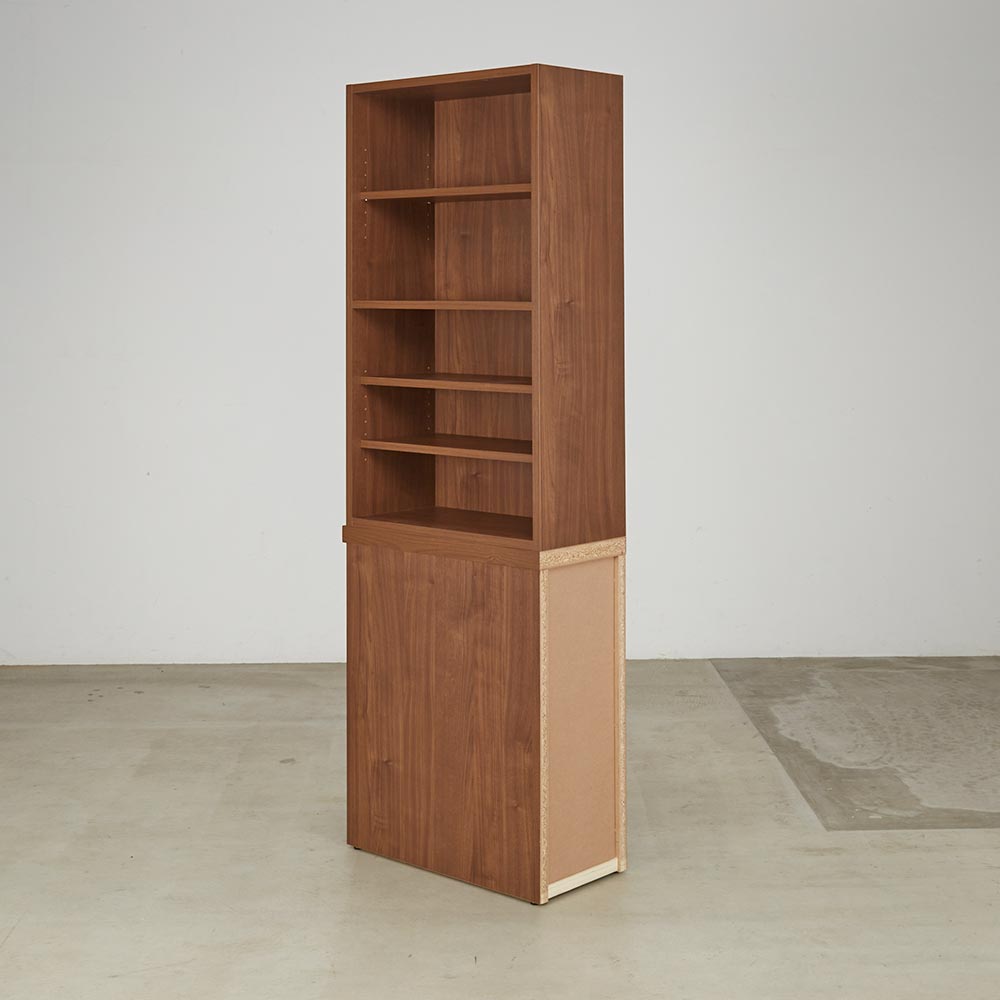 コーディネート例 別売りのデスクと組み合わせ可能なオーク柄のオープンラックもございます。