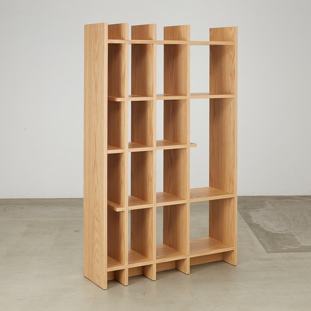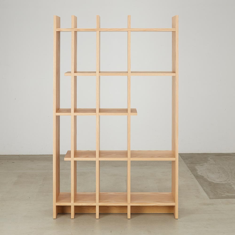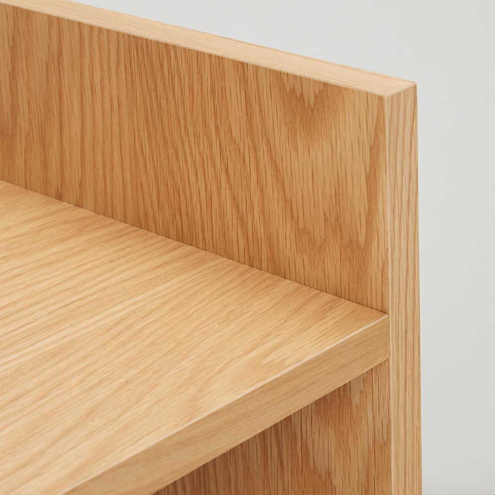 テイストを選ばず空間に馴染む、ミニマルで凛と美しい佇まい。まるでディスプレイのような収納としてリビングの主役になれる存在です。美しい洗練されたデザイン日本の「違い棚」から着想を得てデザインされたシリーズ。シェルフはディスプレイ収納として、ゆとりを持った飾りに便利なサイズ感。アートのようなデザインで、置くだけで空間のアクセントになります。他のシリーズと合わせて使うのがおすすめです。デザインストーリー貴族から武士の時代へと移り変わっていった室町時代に、"新しい"住宅様式として"書院造"が登場しました。現代の和室や和風住宅にも多くの要素が受け継がれている"書院造"には、重要な構成要素として、床の間、違い棚、付書院、帳台構といったものがあります。これらの要素は、それまでスタンダードだった豪華絢爛な寝殿造から、情勢や暮らしの変化に合わせ、より実用的なものへとアップデートされたものばかりです。他にも雨戸、縁側、玄関といった今でも馴染み深い要素も書院造が発祥となっています。そんな書院造の"違い棚"という要素から着想を得て、時代に合わせて変化してきた用途やデザインを"現代の暮らし"に落とし込むことで、日本の伝統的な文化を感じ、伝えていくことができる"インテリア"として生まれました。