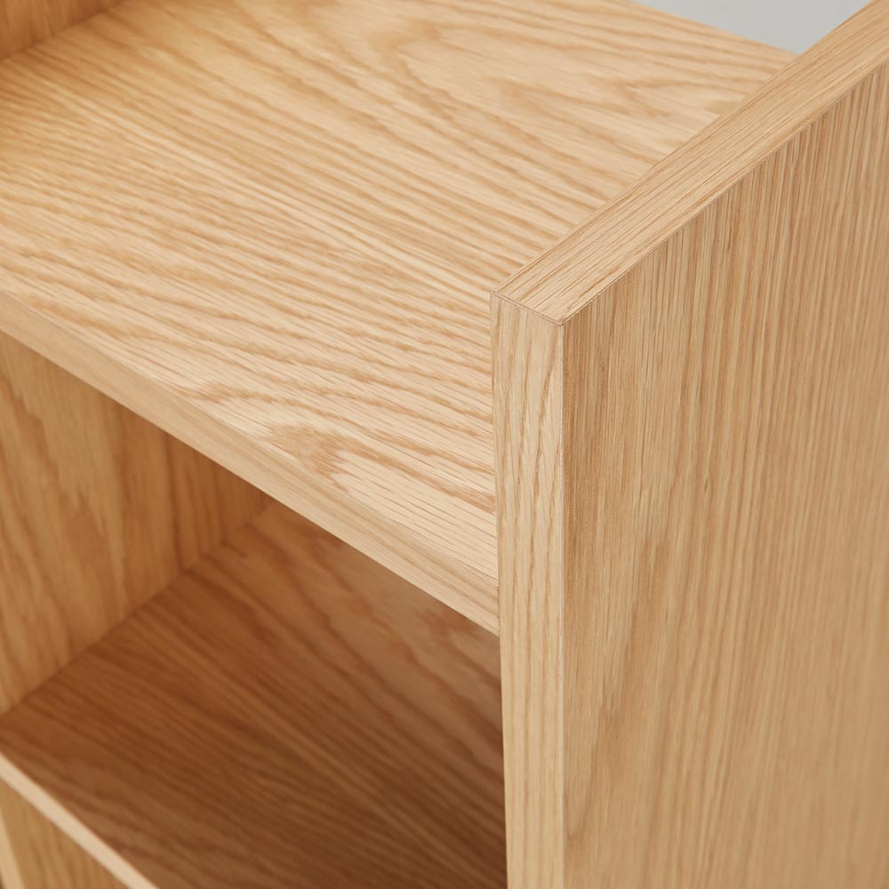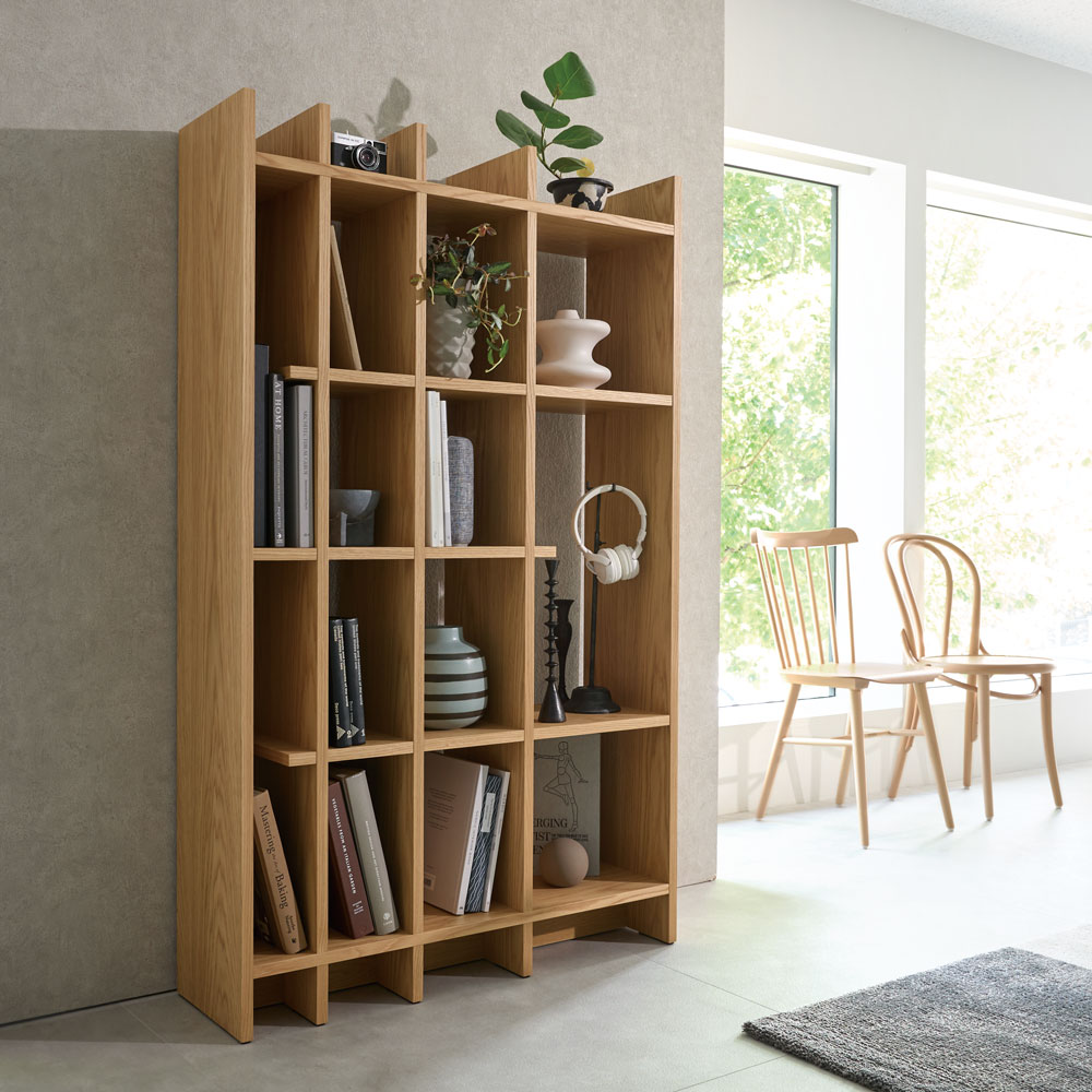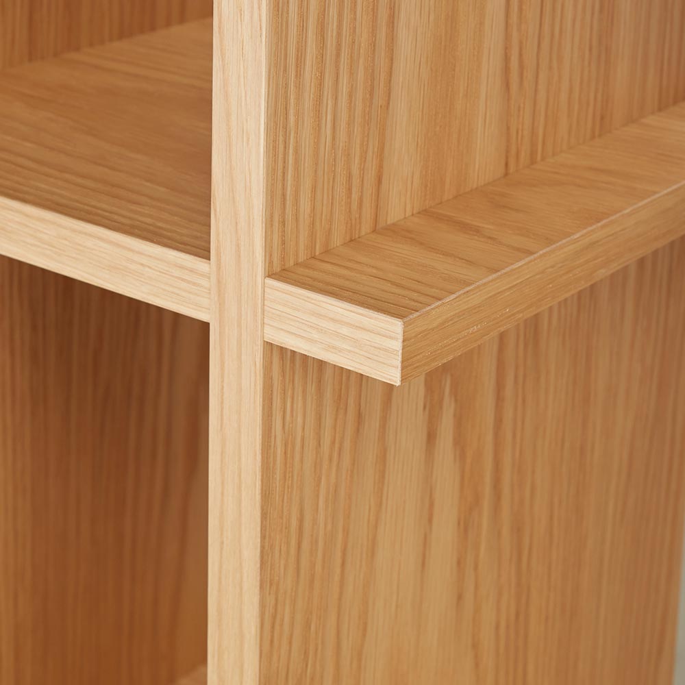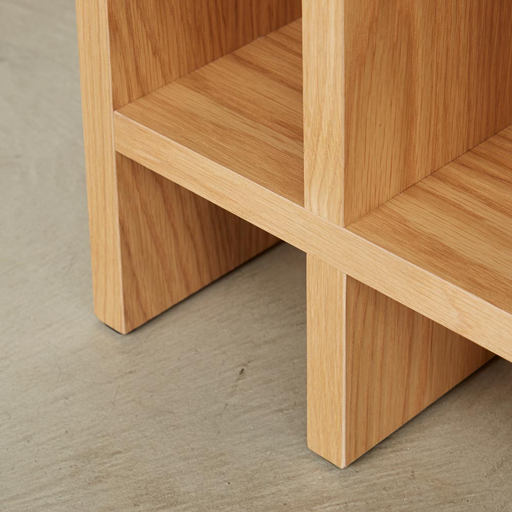 テイストを選ばず空間に馴染む、ミニマルで凛と美しい佇まい。まるでディスプレイのような収納としてリビングの主役になれる存在です。美しい洗練されたデザイン日本の「違い棚」から着想を得てデザインされたシリーズ。シェルフはディスプレイ収納として、ゆとりを持った飾りに便利なサイズ感。アートのようなデザインで、置くだけで空間のアクセントになります。他のシリーズと合わせて使うのがおすすめです。デザインストーリー貴族から武士の時代へと移り変わっていった室町時代に、"新しい"住宅様式として"書院造"が登場しました。現代の和室や和風住宅にも多くの要素が受け継がれている"書院造"には、重要な構成要素として、床の間、違い棚、付書院、帳台構といったものがあります。これらの要素は、それまでスタンダードだった豪華絢爛な寝殿造から、情勢や暮らしの変化に合わせ、より実用的なものへとアップデートされたものばかりです。他にも雨戸、縁側、玄関といった今でも馴染み深い要素も書院造が発祥となっています。そんな書院造の"違い棚"という要素から着想を得て、時代に合わせて変化してきた用途やデザインを"現代の暮らし"に落とし込むことで、日本の伝統的な文化を感じ、伝えていくことができる"インテリア"として生まれました。
