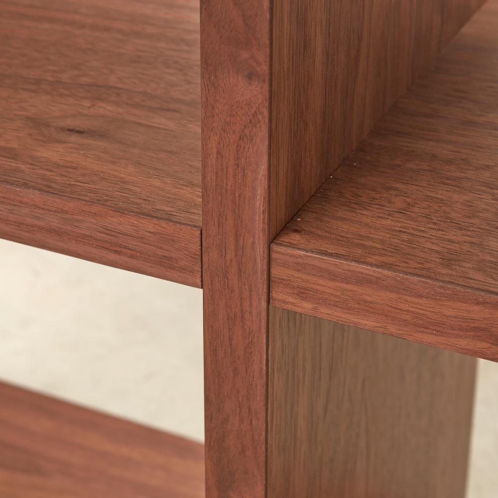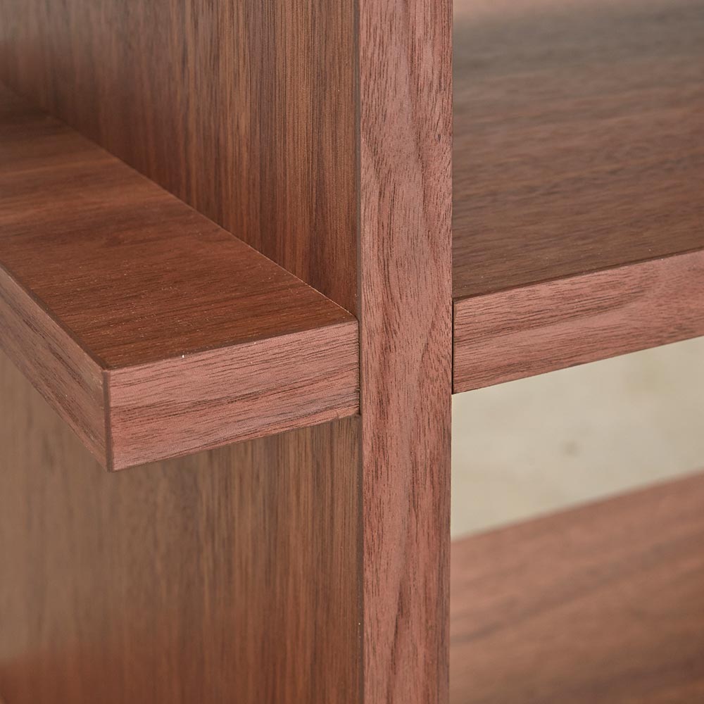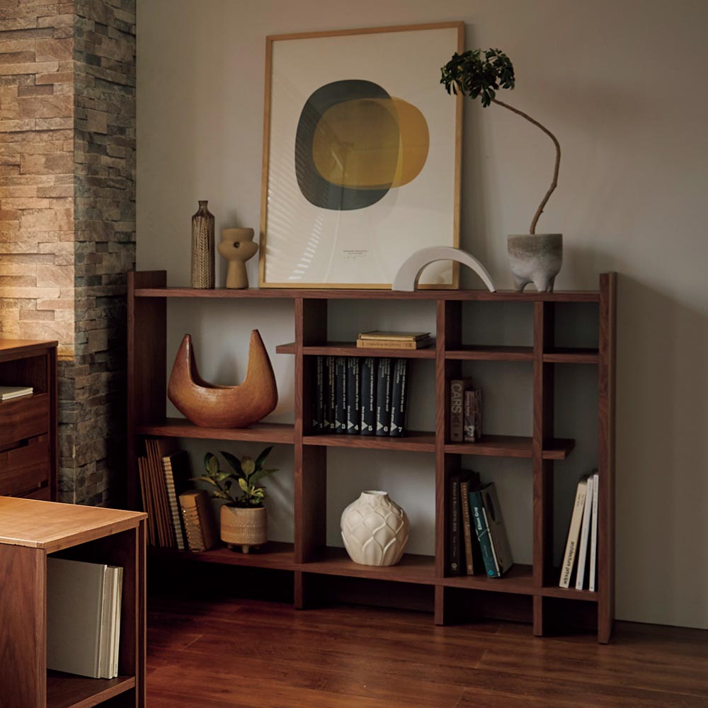 テイストを選ばず空間に馴染む、ミニマルで凛と美しい佇まい。まるでディスプレイのような収納としてリビングの主役になれる存在です。美しい洗練されたデザイン日本の「違い棚」から着想を得てデザインされたシリーズ。シェルフはディスプレイ収納として、ゆとりを持った飾りに便利なサイズ感。アートのようなデザインで、置くだけで空間のアクセントになります。他のシリーズと合わせて使うのがおすすめです。デザインストーリー貴族から武士の時代へと移り変わっていった室町時代に、"新しい"住宅様式として"書院造"が登場しました。現代の和室や和風住宅にも多くの要素が受け継がれている"書院造"には、重要な構成要素として、床の間、違い棚、付書院、帳台構といったものがあります。これらの要素は、それまでスタンダードだった豪華絢爛な寝殿造から、情勢や暮らしの変化に合わせ、より実用的なものへとアップデートされたものばかりです。他にも雨戸、縁側、玄関といった今でも馴染み深い要素も書院造が発祥となっています。そんな書院造の"違い棚"という要素から着想を得て、時代に合わせて変化してきた用途やデザインを"現代の暮らし"に落とし込むことで、日本の伝統的な文化を感じ、伝えていくことができる"インテリア"として生まれました。