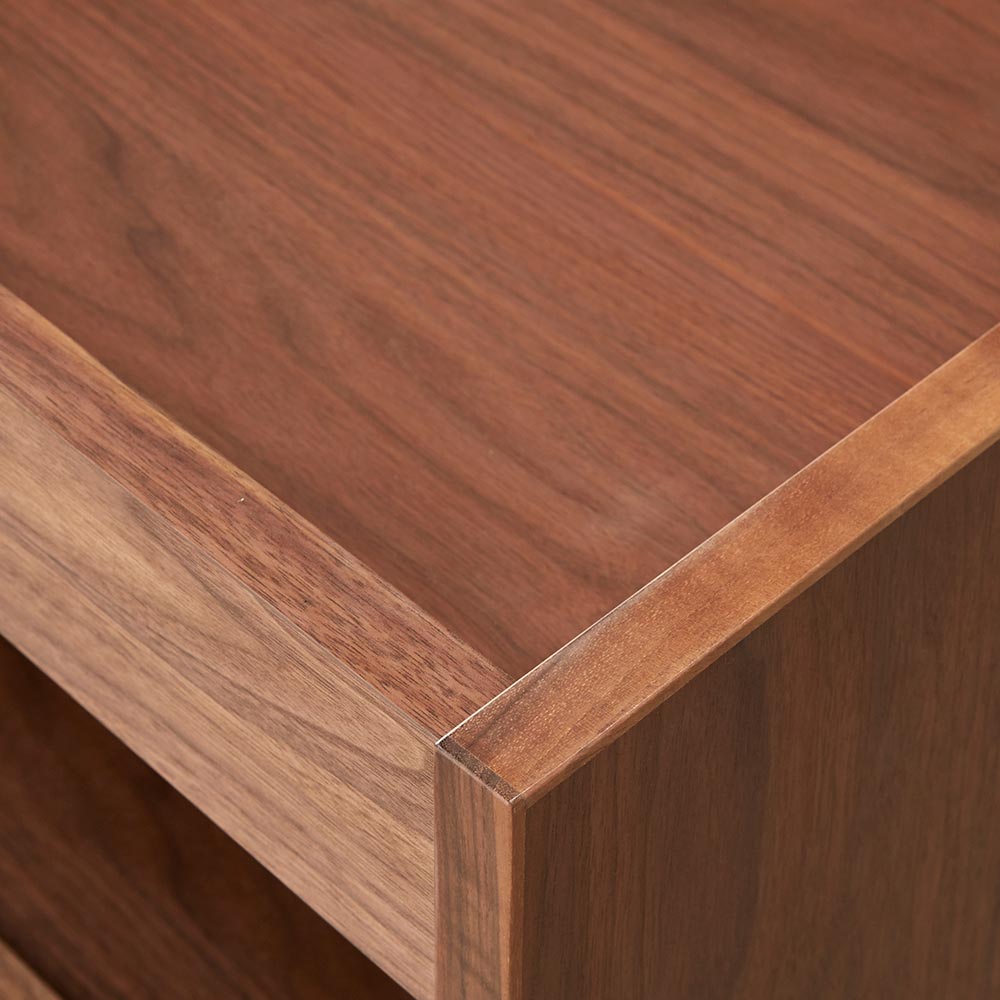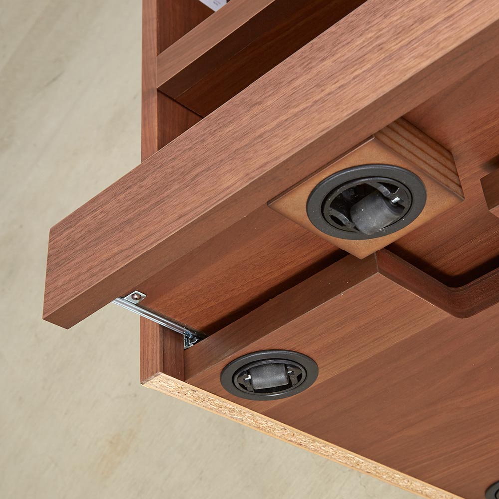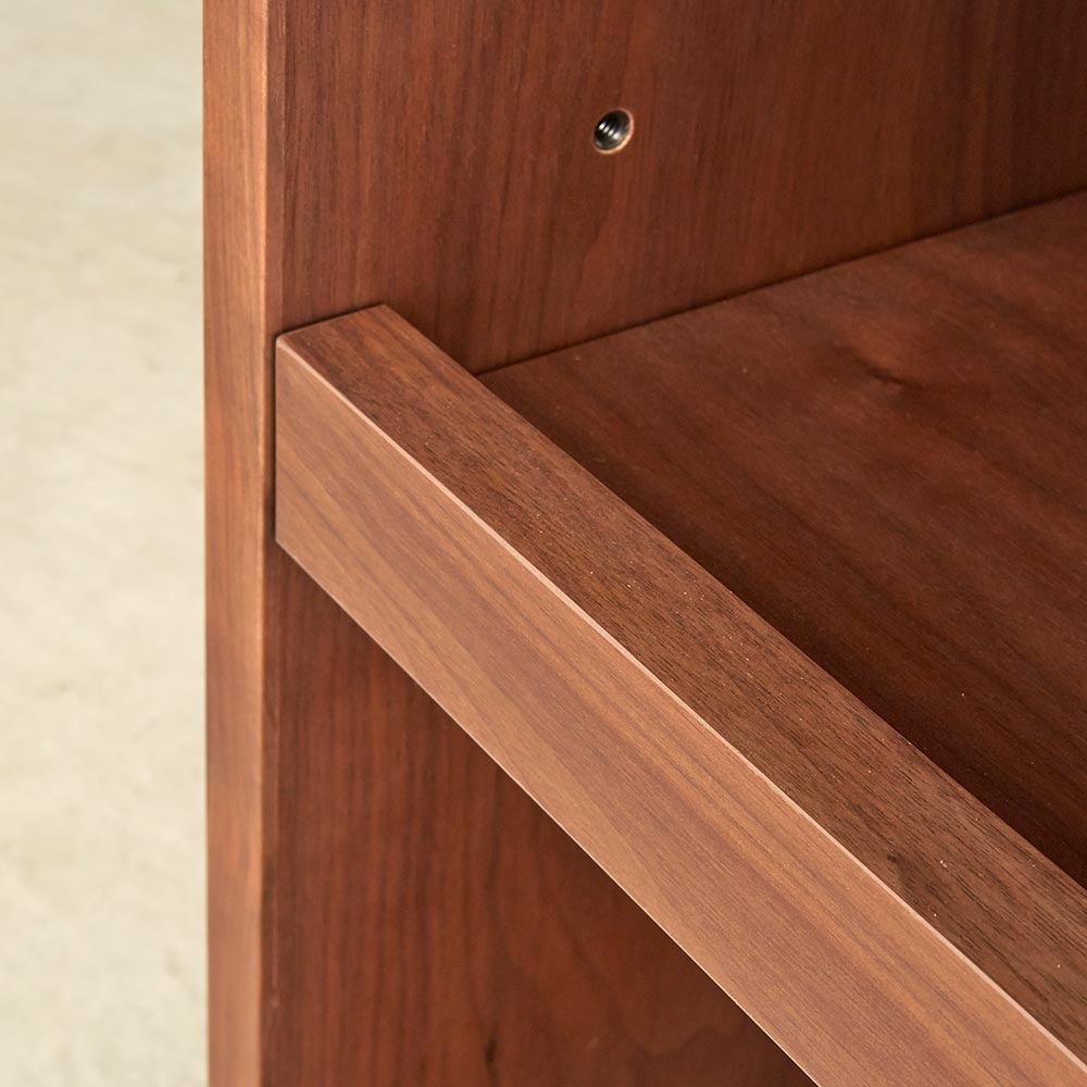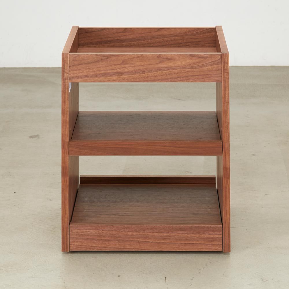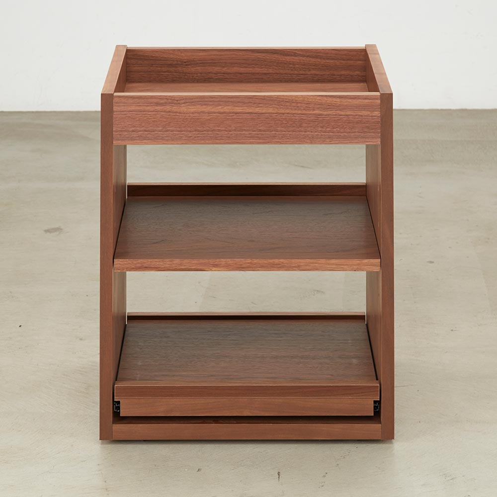 テイストを選ばず空間に馴染む、ミニマルで凛と美しい佇まい。デスクと合わせて使いたいキャスター付の便利なワゴン美しい洗練されたデザイン日本の「違い棚」から着想を得てデザインされたシリーズ。角部分は伝統技法・留め加工で丁寧に仕上げられています。留め加工とは45度に切り落としたパーツ同士を接合する加工のことを言います。留め加工にすることで接合部の溝が目立たなくなり、すっきりとした美しい見た目にすることができます。留め加工がもたらすメリットは大きい一方で、その加工には大変な技術を要します。アリニートシリーズは家具職人が1本1本丁寧に手仕事で仕上げています。別売りのデスクとセットで使うのがおすすめデスクの下に入るようにシリーズ設計されています。サイドワゴンの機能について360度回転する隠しキャスターがついており、スムーズに動かすことができます。下段の引き出しはスライドレールで開閉はスムーズ。プリンターなど設置しても便利に使えます。プリンターは機種ごとに本体サイズ、配線位置や給紙トレイ、排紙トレイの位置等も違いますが、このデスクワゴンなら多くの機種に対応可能です。デザインストーリー貴族から武士の時代へと移り変わっていった室町時代に、"新しい"住宅様式として"書院造"が登場しました。現代の和室や和風住宅にも多くの要素が受け継がれている"書院造"には、重要な構成要素として、床の間、違い棚、付書院、帳台構といったものがあります。これらの要素は、それまでスタンダードだった豪華絢爛な寝殿造から、情勢や暮らしの変化に合わせ、より実用的なものへとアップデートされたものばかりです。他にも雨戸、縁側、玄関といった今でも馴染み深い要素も書院造が発祥となっています。そんな書院造の"違い棚"という要素から着想を得て、時代に合わせて変化してきた用途やデザインを"現代の暮らし"に落とし込むことで、日本の伝統的な文化を感じ、伝えていくことができる"インテリア"として生まれました。