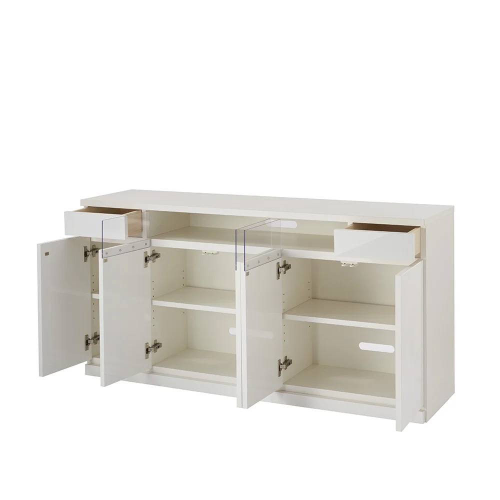 (ア)ホワイト(光沢) どこからでも見やすい高さのテレビボードに収納スペースと隠しキャスターをプラス。 ※対応テレビサイズ(目安)65V