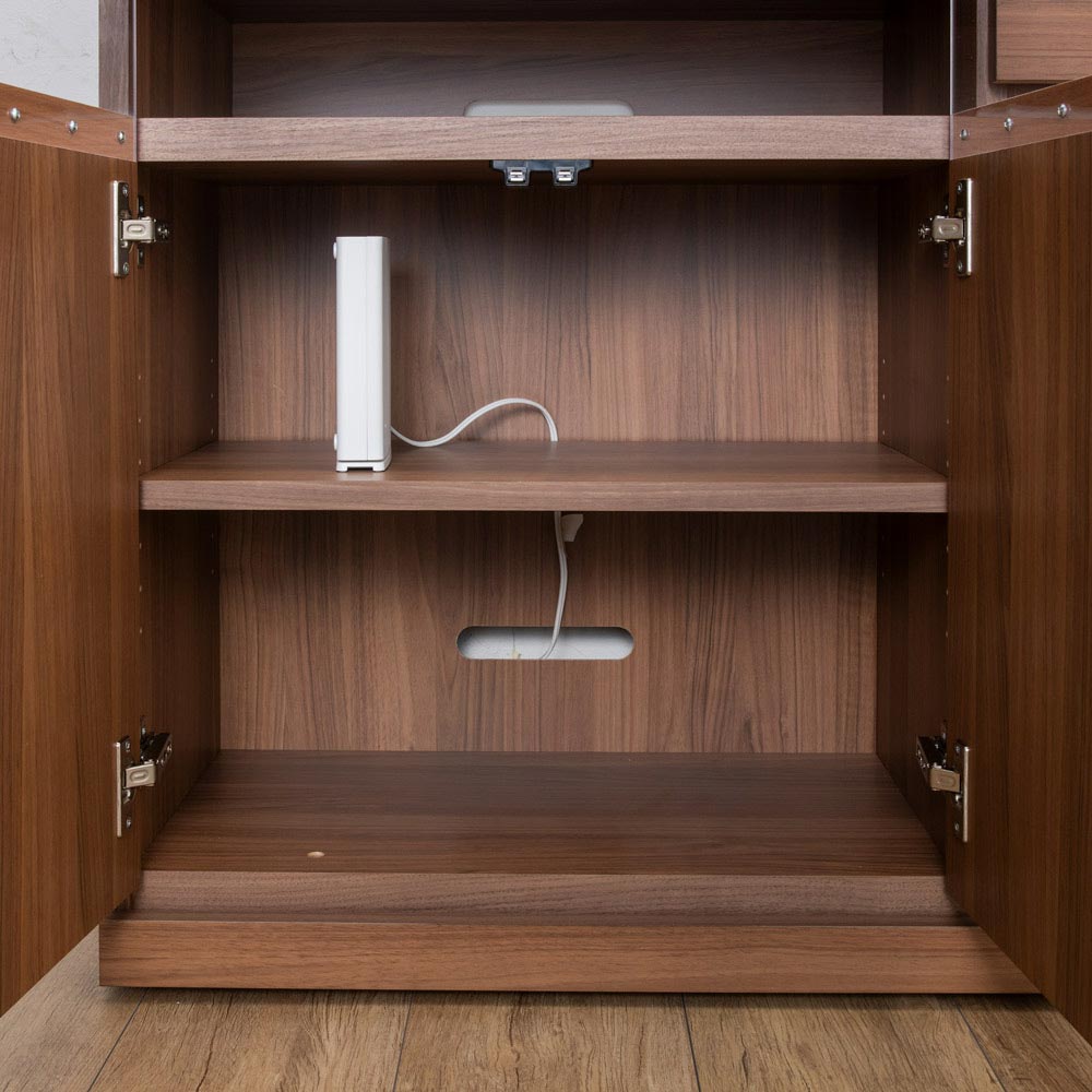 棚板奥のすき間からコードが通せます。