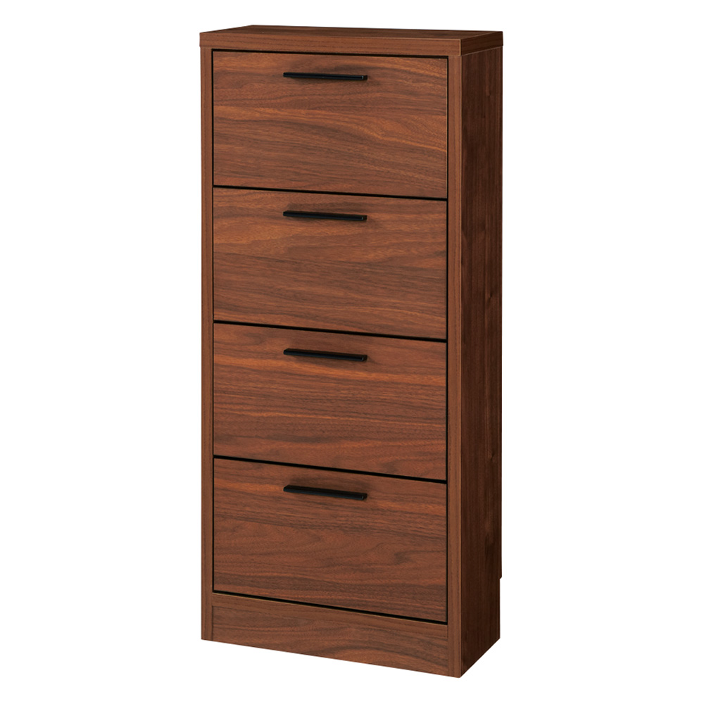 インテリアとコーディネートしやすいウォルナット突板。取っ手部分はシックな黒で統一しました。大人のモダンインテリアにぴったり。