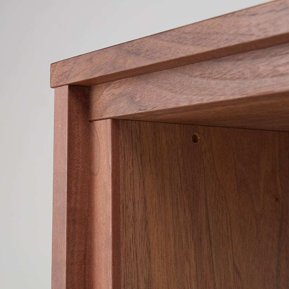 テイストを選ばず空間に馴染む、ミニマルで凛と美しい佇まい。シンプルながら美しいデザインのデスク美しい洗練されたデザイン日本の「違い棚」から着想を得てデザインされたシリーズ。角部分は伝統技法・留め加工で丁寧に仕上げられています。留め加工とは45度に切り落としたパーツ同士を接合する加工のことを言います。留め加工にすることで接合部の溝が目立たなくなり、すっきりとした美しい見た目にすることができます。留め加工がもたらすメリットは大きい一方で、その加工には大変な技術を要します。アリニートシリーズは家具職人が1本1本丁寧に手仕事で仕上げています。別売りのサイドチェストやデスクチェストとセットで使うのがおすすめデスクチェストは下に入るようにシリーズ設計されています。またサイドチェストやサイドボードは高さが揃うように設計されています。デスクの機能について背面にコードタップ収納を確保。上部より開閉できるので見た目もすっきり。