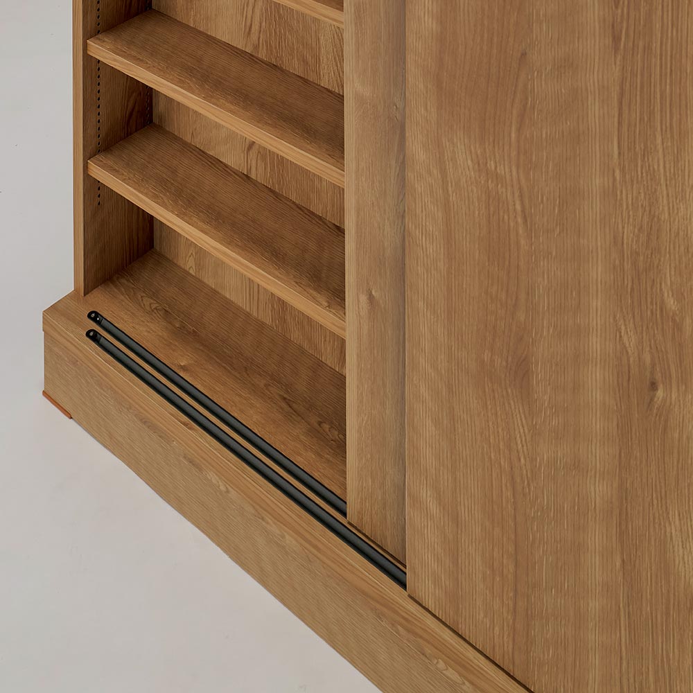 薄型設計、1cmピッチの可動棚、開閉スペース不要の引き戸、高さオーダーの上置きをプラスすれば天井まで有効活用。限られたスペースに最大限効率良く収納するための、知恵を集めた本棚です。ブラウン 写真左から本体幅87cm奥行19.5cmタイプ、117cm奥行19.5cmタイプ ※上置きは別売りです省スペース・効率収納の知恵が満載薄型設計、1cmピッチの可動棚、開閉スペース不要の引き戸、高さオーダーの上置きをプラスすれば天井まで有効活用。限られたスペースに最大限効率良く収納するための、知恵を集めた本棚です。ブラウン 本体幅117cm奥行19.5cmタイプ ※上置きは別売りですベッドサイドに置いても邪魔にならない引き戸式スペースにゆとりがない寝室にも置ける薄型・省スペースタイプ。扉付きだから大切な書籍を日焼けやホコリから守ります。転倒防止金具付きで地震対策もバッチリ。上置きを併用すればさらに安心です。ホワイト 本体幅117cm奥行29.5cmタイプ ※上置きは別売りです1cmピッチの可動棚で大小様々な日用品もスッキリリビングでは掃除道具や日用品のストックなど、置き場所に困る物の収納場所としても活躍。形もサイズも様々な物を、1cmピッチの可動棚でスッキリ整理できます。ホワイト 本体幅87cm奥行19.5cmタイプ ※上置きは別売りです奥行19.5cmと29.5cmの2タイプをご用意薄型設計&引き戸だから玄関や廊下などに置いても邪魔にならず、圧迫感もありません。壁一面の収納でも扉を閉じればスッキリした印象に。来客時も安心です。写真左 奥行19.5cmタイプ 写真右 奥行29.5cmタイプ奥行19.5cmと29.5cmの2タイプをご用意雑誌や大型書籍も収納したい、単行本やコミックを大量収納したいなど、スペースや収納したいものに合わせて2タイプの奥行が選べます。シンプルで握りやすい取っ手のデザインにも注目一枚扉をサッと開けられる、シンプルで握りやすい取っ手。金属の素材感がデザインのアクセントとしても効果的です。開け閉めがスムーズなレール付き引き戸戸車の滑りが良い素材のレール付き。頻繁に開け閉めしても戸車&レールで滑らかに動きます。一枚扉がなめらかに動く戸車付き引き戸が滑らかに動く戸車付き。取っ手に手をかければスッと開き、レールの上をスムーズに動きます。傾き調整機能も付いており、戸車を上下に調整可能です。丈夫で丁寧なつくりの日本製1cmピッチの引き戸本棚シリーズは、幅は幅87cm、幅117cmの2タイプ、奥行は19.5cm、29.5cmの2タイプ。色はブラウンとホワイトの2色展開で、お部屋に合わせてお選びいただけます。国内メーカーが丁寧に仕上げた日本製です。扉の中を無駄なく使って、暮らしにフィットする収納に本棚としてはもちろん、畳んだ衣類やバッグなどを収納すればクローゼット使いも可能。1cmピッチの棚板を上手に使って、暮らしにフィットする収納スペースが作れます。