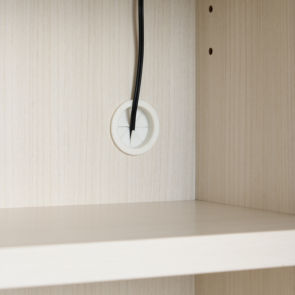 扉内の棚板奥には1cmのすき間があるので、モデムやルーターなどのコードを上下に通せます。