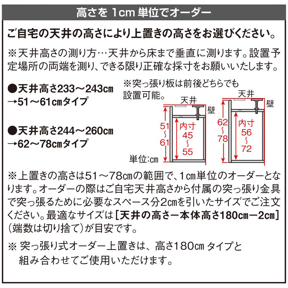 ※別売りの上置きは高さを1cm単位でサイズオーダーできます。
