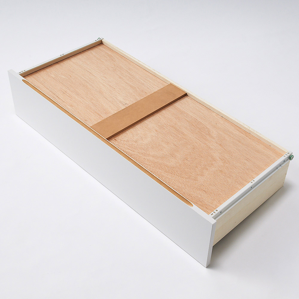 引き出し裏面に補強板で底板強度をアップ。