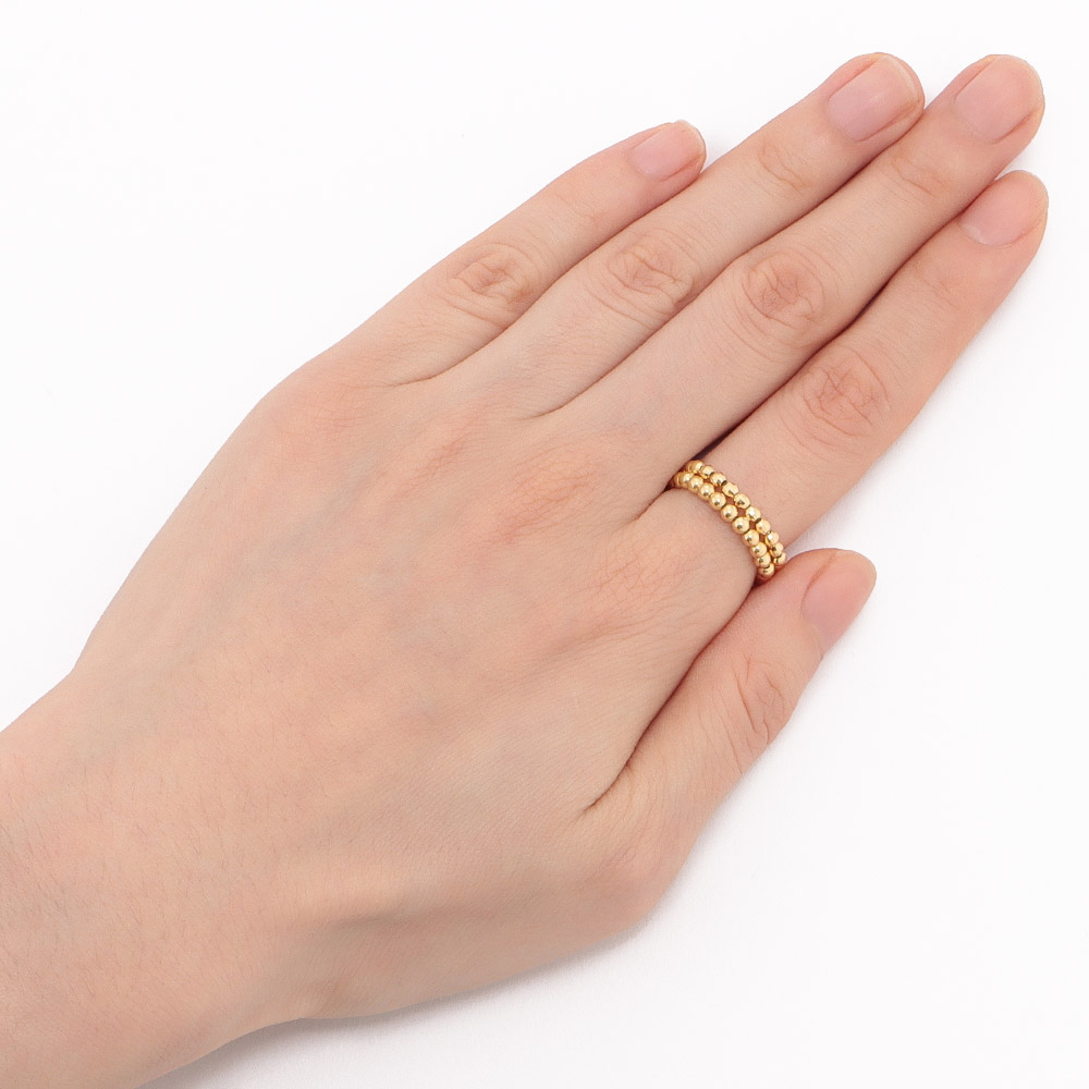 ALL TIME FAVORITE美しい人生のために選ぶ「お気に入り」という愛しい輝き愛用のジュエリーは、装いのマイ・アイコンとなるもの。存在感がありつつ自由な演出も楽しめる「お気に入り」候補をコーディネート例と共にご紹介します。主役リングを中心にスタイルを組み立てて地金のミラーボールと鏡面ボールを組み合わせた2連リング。形状記憶で伸縮し、着ける指を選びません。